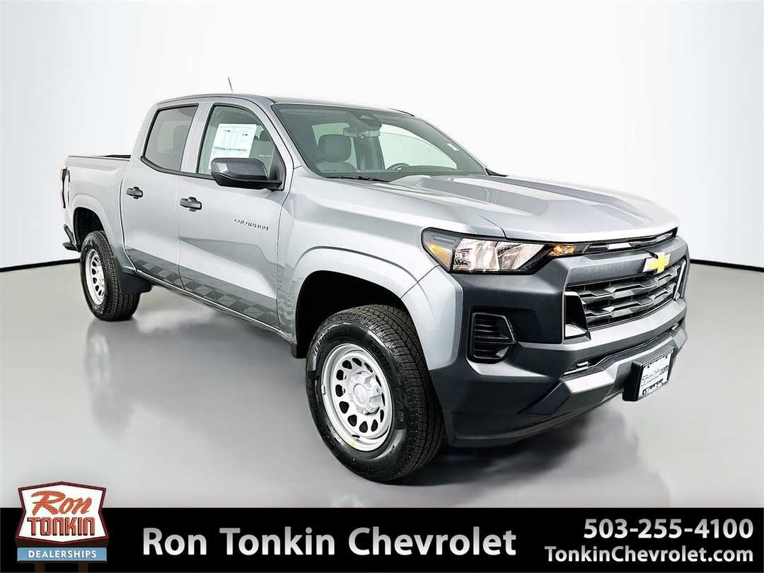 Price includes all available non-conditional rebates: $1000 - Chevrolet Consumer Cash Program. Exp. 03/31/2026 Factory MSRP: $34,9703.42 Rear Axle Ratio, 4-Way Manual Passenger Seat Adjuster, 4-Wheel Disc Brakes, 6 Speakers, 6-Speaker Audio System Feature, 6-Way Manual Driver Seat Adjuster, ABS brakes, Air Conditioning, AM/FM radio: SiriusXM with 360L, Apple CarPlay/Android Auto, Auto High-beam Headlights, Automatic Emergency Braking, Black Spray-on Bedliner, Brake assist, Chevy Safety Assist, Cloth Seat Trim, Delay-off headlights, Driver door bin, Driver vanity mirror, Dual front impact airbags, Dual front side impact airbags, Electronic Stability Control, Emergency communication system: OnStar, Following Distance Indicator, Forward Collision Alert, Front anti-roll bar, Front Bucket Seats, Front Center Armrest, Front License Plate Kit, Front Pedestrian and Bicyclist Braking, Front wheel independent suspension, Heated door mirrors, IntelliBeam Automatic High Beam on/Off, Lane Keep Assist with Lane Departure Warning, Low tire pressure warning, Navigation System, Occupant sensing airbag, Overhead airbag, Panic alarm, Passenger door bin, Passenger vanity mirror, Power door mirrors, Power steering, Power windows, Preferred Equipment Group 2WT, Radio data system, Radio: 11.3" Diagonal Advanced Color LCD Display, Rear step bumper, Rear window defroster, Remote keyless entry, Security system, SiriusXM with 360L Trial Subscription, Speed control, Speed-sensing steering, Split folding rear seat, Steering Wheel Mounted Audio Controls, Steering wheel mounted audio controls, Tachometer, Tilt steering wheel, Traction control, Trip computer, Variably intermittent wipers, Wheels: 17" x 8" Ultra Silver Metallic Steel, Wireless Phone Projection.2026 Chevrolet Work Truck Colorado Sterling Gray Metallic4D Crew Cab 8-Speed Automatic 2.7L I4 Turbocharged DOHC 16V LEV3-ULEV50 310hp RWD