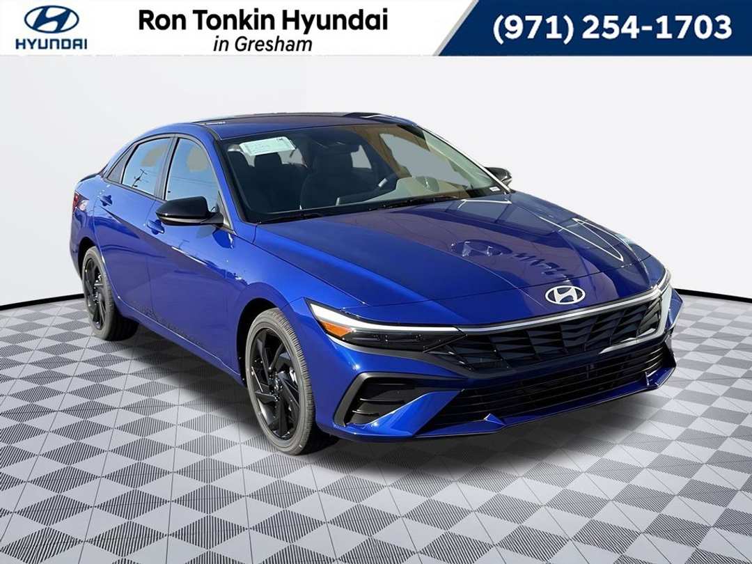 2026 Hyundai Elantra Hybrid SEL Sport I4 6-Speed Dual Clutch FWD 4D Sedan Intense Blue I4, 4-Wheel Disc Brakes, 6 Speakers, ABS brakes, Air Conditioning, Alloy wheels, AM/FM radio: SiriusXM, Apple CarPlay & Android Auto, Auto High-beam Headlights, Automatic temperature control, Brake assist, Bumpers: body-color, Cargo Blocks, Cargo Net, Cargo Package, Cargo Side Bins, Cargo Tray, Carpeted Floor Mats, Delay-off headlights, Driver door bin, Driver vanity mirror, Dual front impact airbags, Dual front side impact airbags, Electronic Stability Control, Emergency communication system: None, Exterior Parking Camera Rear, First Aid Kit, Front anti-roll bar, Front Bucket Seats, Front Center Armrest, Front dual zone A/C, Front reading lights, Front wheel independent suspension, Fully automatic headlights, Heated door mirrors, Illuminated entry, Low tire pressure warning, Navigation System, Occupant sensing airbag, Option Group 01, Outside temperature display, Overhead airbag, Overhead console, Panic alarm, Passenger door bin, Passenger vanity mirror, Power door mirrors, Power steering, Power windows, Premium Cloth Seat Trim, Radio: AM/FM/HD/SiriusXM Display Audio, Rear side impact airbag, Rear window defroster, Remote keyless entry, Security system, Severe Weather Kit, Speed control, Speed-sensing steering, Spoiler, Steering wheel mounted audio controls, Tachometer, Telescoping steering wheel, Tilt steering wheel, Traction control, Trip computer, Variably intermittent wipers, Wheels: 17 x 7.0J Gloss Black Dark Finish Alloy, I4. Call for availability. Come in to Ron Tonkin Gresham Hyundai to test drive today! DA2028 View our entire inventory at https://www.rontonkinhyundai.com/ Pricing includes all applicable factory rebates, and discounts, buyer must finance through HMFA on approved credit. Price excludes tax, title, license, doc fee and dealer added accessories. Price includes: $2000 - Hyundai HMF Dealer Choice : $2000 discount and 5.39% APR for 24 months. $44.05 per $1000 financed. Available to well qualified buyers who finance through Hyundai Motor Finance. H704. Exp. 03/31/2026