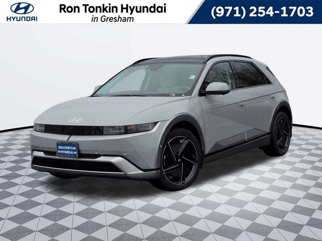 Recent Arrival! 2026 Hyundai IONIQ 5 Limited Electric Motor 1-Speed Automatic AWD 4D Sport Utility Cyber Gray 4-Wheel Disc Brakes, 8 Speakers, ABS brakes, Air Conditioning, Alloy wheels, AM/FM radio: SiriusXM, Apple CarPlay & Android Auto, Auto High-beam Headlights, Auto-dimming Rear-View mirror, Automatic temperature control, Bodyside moldings, Brake assist, Bumpers: body-color, Carpeted Floor Mats, Delay-off headlights, Driver door bin, Driver vanity mirror, Dual front impact airbags, Dual front side impact airbags, Electronic Stability Control, Emergency communication system: None, First Aid Kit, Four wheel independent suspension, Front anti-roll bar, Front Bucket Seats, Front Center Armrest w/Storage, Front dual zone A/C, Front reading lights, Fully automatic headlights, Garage door transmitter: HomeLink, H-Tex Artificial Leather Seating Surfaces, Heads-Up Display, Heated and Ventilated Front Bucket Seats, Heated door mirrors, Heated front seats, Heated rear seats, Heated steering wheel, Illuminated entry, Low tire pressure warning, Memory seat, Mudguards, Navigation System, Occupant sensing airbag, Option Group 01, Outside temperature display, Overhead airbag, Overhead console, Panic alarm, Passenger door bin, Passenger vanity mirror, Power door mirrors, Power driver seat, Power Liftgate, Power passenger seat, Power steering, Power windows, Radio: AM/FM/SiriusXM/HD Audio System, Rain sensing wipers, Rear anti-roll bar, Rear reading lights, Rear seat center armrest, Rear side impact airbag, Rear window defroster, Rear window wiper, Remote keyless entry, Security system, Speed control, Speed-sensing steering, Split folding rear seat, Spoiler, Steering wheel mounted audio controls, Telescoping steering wheel, Tilt steering wheel, Traction control, Trip computer, Turn signal indicator mirrors, Up Seatback Cargo Mat, Variably intermittent wipers, Ventilated front seats, Wheels: 20" x 8.5J Alloy. Call for availability. Come in to Ron Tonkin Gresham Hyundai to test drive today! DA2028 View our entire inventory at https://www.rontonkinhyundai.com/ Pricing includes all applicable factory rebates, and discounts, buyer must finance through HMFA on approved credit. Price excludes tax, title, license, doc fee and dealer added accessories. Price includes: $10000 - Hyundai HMF Dealer Choice: $10000 discount and 5.39% APR for 24 months. $44.05 per $1000 financed. Available to well qualified buyers who finance through Hyundai Motor Finance. H704. Exp. 03/31/2026