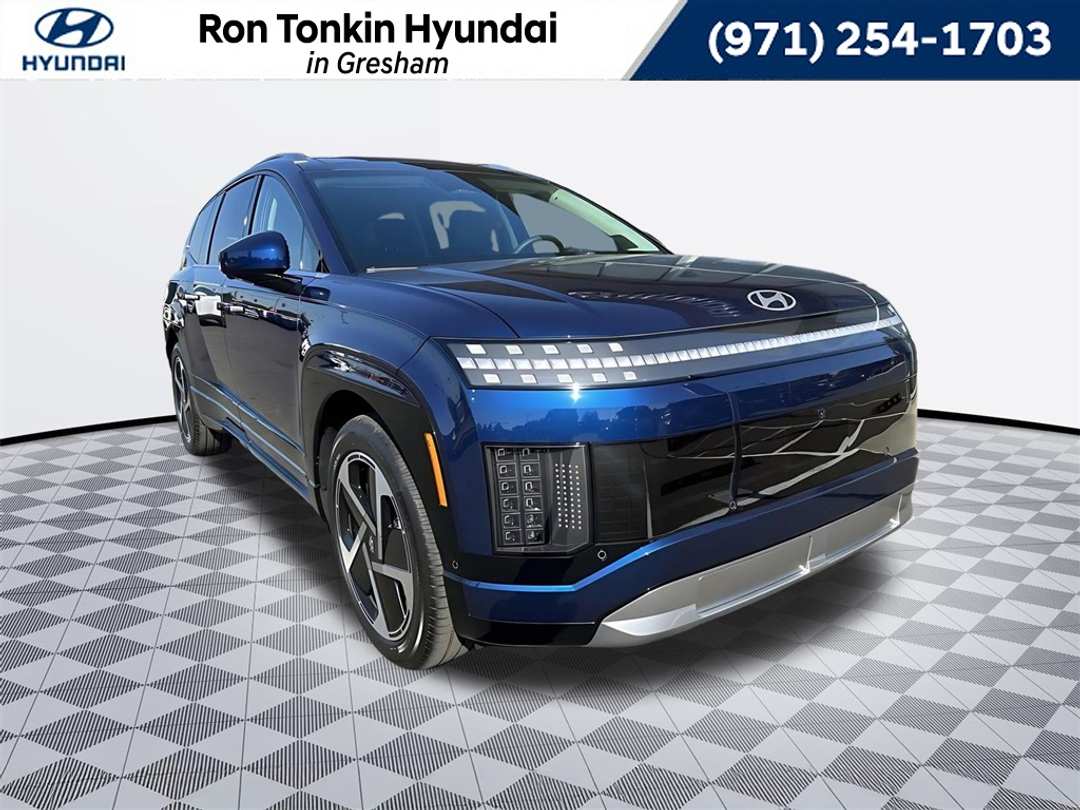 2026 Hyundai IONIQ 9 Performance Limited Electric Motor 1-Speed Automatic AWD 4D Sport Utility Cosmic Blue 14 Speakers, 3rd row seats: bench, 4-Wheel Disc Brakes, ABS brakes, Air Conditioning, Alloy wheels, AM/FM radio: SiriusXM, Apple CarPlay & Android Auto, Auto High-beam Headlights, Auto-dimming Rear-View mirror, Auto-leveling suspension, Automatic temperature control, Bodyside moldings, Brake assist, Bumpers: body-color, Cargo Net, Cargo Tray, Carpeted Floor Mats, Delay-off headlights, Driver door bin, Driver vanity mirror, Dual front impact airbags, Dual front side impact airbags, Electronic Stability Control, Emergency communication system: None, Four wheel independent suspension, Front anti-roll bar, Front Bucket Seats, Front Center Armrest, Front dual zone A/C, Front reading lights, Fully automatic headlights, Garage door transmitter: HomeLink, H-Tex Leatherette Seating Surfaces (Two-Tone), Heated and Ventilated Front Bucket Seats, Heated door mirrors, Heated front seats, Heated rear seats, Heated steering wheel, Illuminated entry, Leather steering wheel, Low tire pressure warning, Memory seat, Navigation System, Occupant sensing airbag, Option Group 01, Outside temperature display, Overhead airbag, Overhead console, Panic alarm, Passenger door bin, Passenger vanity mirror, Power door mirrors, Power driver seat, Power Liftgate, Power moonroof: Panoramic, Power passenger seat, Power steering, Power windows, Radio: AM/FM/SiriusXM/HD Audio System, Rain sensing wipers, Rear air conditioning, Rear anti-roll bar, Rear reading lights, Rear side impact airbag, Rear window defroster, Rear window wiper, Reclining 3rd row seat, Remote keyless entry, Security system, Speed control, Split folding rear seat, Spoiler, Steering wheel memory, Steering wheel mounted audio controls, Telescoping steering wheel, Tilt steering wheel, Traction control, Trip computer, Turn signal indicator mirrors, Variably intermittent wipers, Ventilated front seats, Ventilated rear seats, Wheels: 21" x 9J 5-Spoke Alloy. Call for availability. Come in to Ron Tonkin Gresham Hyundai to test drive today! DA2028 View our entire inventory at https://www.rontonkinhyundai.com/ Pricing includes all applicable factory rebates, and discounts, buyer must finance through HMFA on approved credit. Price excludes tax, title, license, doc fee and dealer added accessories. Price includes: $10000 - Retail Bonus Cash. Exp. 03/02/2026