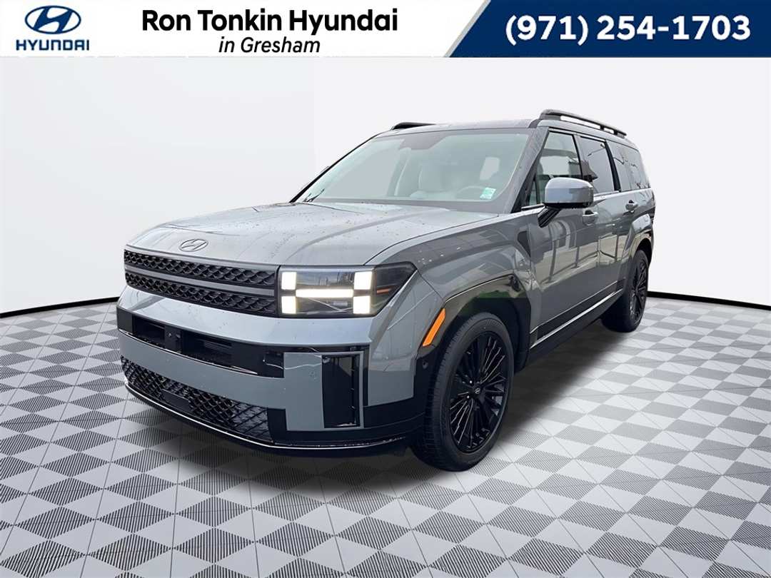 2026 Hyundai Santa Fe Hybrid Calligraphy I4 6-Speed Automatic with Shiftronic AWD 4D Sport Utility Hampton Gray I4, 12 Speakers, 3rd row seats: bench, 4-Wheel Disc Brakes, ABS brakes, Air Conditioning, All Season Fitted Liners, Alloy wheels, AM/FM radio: SiriusXM, Apple CarPlay & Android Auto, Auto High-beam Headlights, Auto-dimming Rear-View mirror, Automatic temperature control, Brake assist, Bumpers: body-color, Cargo Net, Cargo Organizer, Carpeted Floor Mats, Delay-off headlights, Driver door bin, Driver vanity mirror, Dual front impact airbags, Dual front side impact airbags, Electronic Stability Control, Emergency communication system, Exterior Parking Camera Rear, First Aid Kit, Four wheel independent suspension, Front anti-roll bar, Front Bucket Seats, Front Center Armrest, Front dual zone A/C, Front reading lights, Fully automatic headlights, Garage door transmitter: HomeLink, Heads-Up Display, Heated and Ventilated Front Bucket Seats, Heated door mirrors, Heated front seats, Heated rear seats, Heated steering wheel, Illuminated entry, Knee airbag, Leather steering wheel, Low tire pressure warning, Memory seat, Navigation System, Occupant sensing airbag, Option Group 01, Outside temperature display, Overhead airbag, Overhead console, Panic alarm, Passenger door bin, Passenger vanity mirror, Power door mirrors, Power driver seat, Power Liftgate, Power moonroof, Power passenger seat, Power steering, Power windows, Quilted Premium Nappa Leather Seat Trim, Radio: AM/FM/HD Bose Premium Audio System, Rain sensing wipers, Rear anti-roll bar, Rear side impact airbag, Rear window defroster, Rear window wiper, Remote keyless entry, Security system, Speed control, Speed-sensing steering, Split folding rear seat, Spoiler, Steering wheel mounted audio controls, Tachometer, Telescoping steering wheel, Tilt steering wheel, Traction control, Trip computer, Turn signal indicator mirrors, Variably intermittent wipers, Ventilated front seats, Wheels: 20" x 8.5J Unique Dark Finish Alloy, I4. Call for availability. Come in to Ron Tonkin Gresham Hyundai to test drive today! DA2028 View our entire inventory at https://www.rontonkinhyundai.com/ Pricing includes all applicable factory rebates, and discounts, buyer must finance through HMFA on approved credit. Price excludes tax, title, license, doc fee and dealer added accessories. Price includes: $4000 - Hyundai HMF Dealer Choice : $4000 discount and 5.39% APR for 24 months. $44.05 per $1000 financed. Available to well qualified buyers who finance through Hyundai Motor Finance. H704. Exp. 03/02/2026