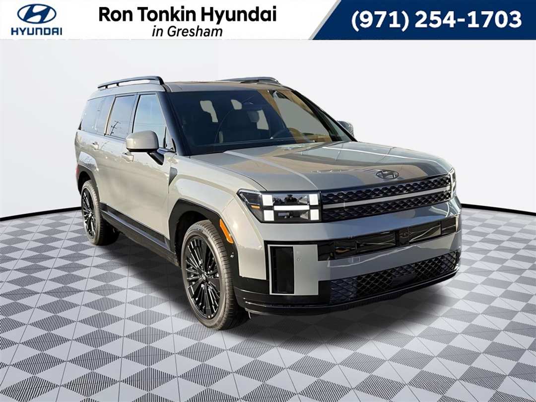 2026 Hyundai Santa Fe Hybrid Calligraphy I4 6-Speed Automatic with Shiftronic AWD 4D Sport Utility Hampton Gray I4, 12 Speakers, 3rd row seats: bench, 4-Wheel Disc Brakes, ABS brakes, Air Conditioning, Alloy wheels, AM/FM radio: SiriusXM, Apple CarPlay & Android Auto, Auto High-beam Headlights, Auto-dimming Rear-View mirror, Automatic temperature control, Brake assist, Bumpers: body-color, Cargo Cover/Screen, Cargo Net, Carpeted Floor Mats, Delay-off headlights, Driver door bin, Driver vanity mirror, Dual front impact airbags, Dual front side impact airbags, Electronic Stability Control, Emergency communication system, Exterior Parking Camera Rear, First Aid Kit, Four wheel independent suspension, Front anti-roll bar, Front Bucket Seats, Front Center Armrest, Front dual zone A/C, Front reading lights, Fully automatic headlights, Garage door transmitter: HomeLink, Heads-Up Display, Heated and Ventilated Front Bucket Seats, Heated door mirrors, Heated front seats, Heated rear seats, Heated steering wheel, Illuminated entry, Knee airbag, Leather steering wheel, Low tire pressure warning, Memory seat, Navigation System, Occupant sensing airbag, Option Group 01, Outside temperature display, Overhead airbag, Overhead console, Panic alarm, Passenger door bin, Passenger vanity mirror, Power door mirrors, Power driver seat, Power Liftgate, Power moonroof, Power passenger seat, Power steering, Power windows, Quilted Premium Nappa Leather Seat Trim, Radio: AM/FM/HD Bose Premium Audio System, Rain sensing wipers, Rear anti-roll bar, Rear side impact airbag, Rear window defroster, Rear window wiper, Remote keyless entry, Roadside Assistance Kit, Security system, Speed control, Speed-sensing steering, Split folding rear seat, Spoiler, Steering wheel mounted audio controls, Tachometer, Telescoping steering wheel, Tilt steering wheel, Traction control, Trip computer, Turn signal indicator mirrors, Variably intermittent wipers, Ventilated front seats, Wheels: 20" x 8.5J Unique Dark Finish Alloy, I4. Call for availability. Come in to Ron Tonkin Gresham Hyundai to test drive today! DA2028 View our entire inventory at https://www.rontonkinhyundai.com/ Pricing includes all applicable factory rebates, and discounts, buyer must finance through HMFA on approved credit. Price excludes tax, title, license, doc fee and dealer added accessories. Price includes: $4000 - Hyundai HMF Dealer Choice : $4000 discount and 5.39% APR for 24 months. $44.05 per $1000 financed. Available to well qualified buyers who finance through Hyundai Motor Finance. H704. Exp. 03/02/2026