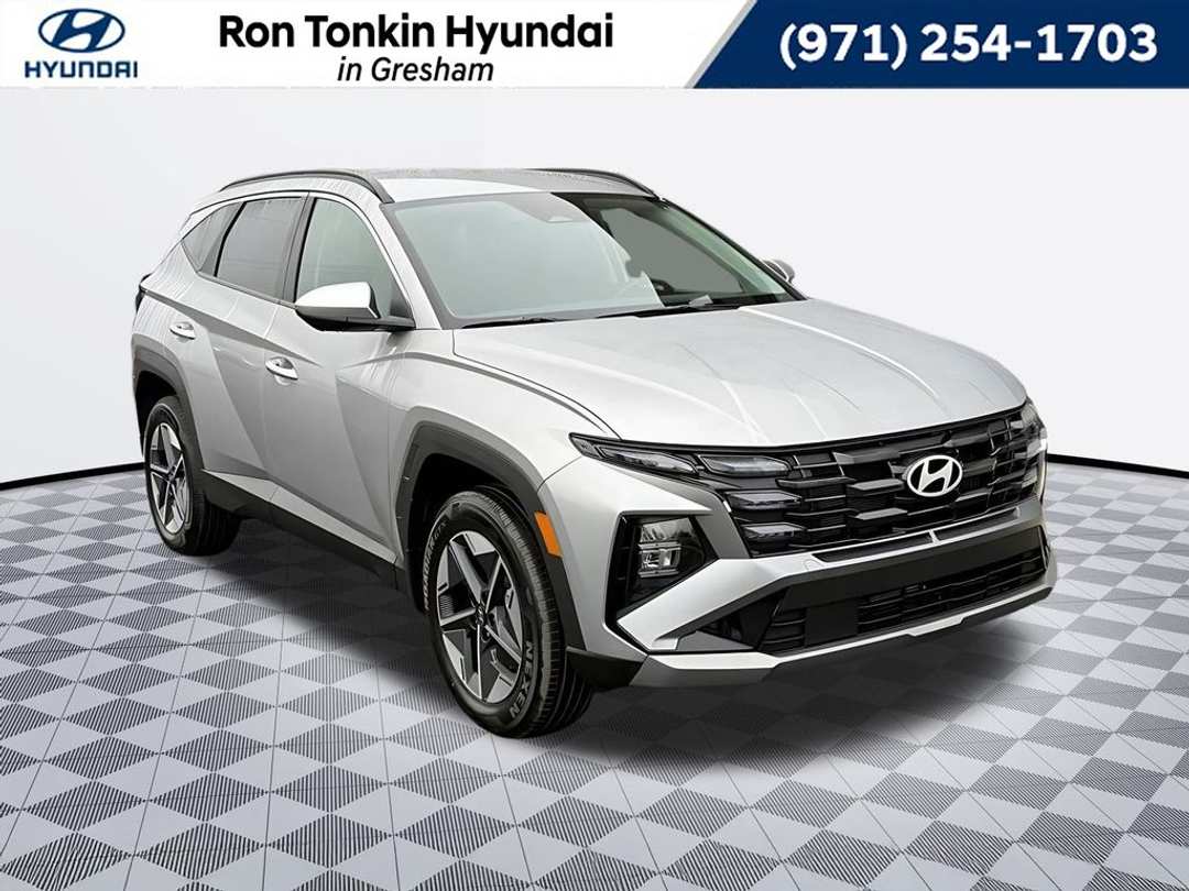 2026 Hyundai Tucson Hybrid SEL 1.6L I4 DGI Hybrid Turbocharged DOHC 16V LEV3-SULEV30 6-Speed Automatic AWD 4D Sport Utility Shimmering Silver 1.6L I4 DGI Hybrid Turbocharged DOHC 16V LEV3-SULEV30, 18" x 7.5J Alloy Wheels, 4-Wheel Disc Brakes, 6 Speakers, ABS brakes, Air Conditioning, Alloy wheels, AM/FM radio: SiriusXM, Apple CarPlay & Android Auto, Auto High-beam Headlights, Automatic temperature control, Brake assist, Bumpers: body-color, Cargo Net, Cargo Tray, Carpeted Floor Mats, Delay-off headlights, Driver door bin, Driver vanity mirror, Dual front impact airbags, Dual front side impact airbags, Electronic Stability Control, Emergency communication system: None, First Aid Kit, Four wheel independent suspension, Front anti-roll bar, Front Bucket Seats, Front Center Armrest, Front dual zone A/C, Front reading lights, Fully automatic headlights, Heated door mirrors, Heated Front Bucket Seats, Heated front seats, Illuminated entry, Low tire pressure warning, Occupant sensing airbag, Option Group 01, Outside temperature display, Overhead airbag, Overhead console, Panic alarm, Passenger door bin, Passenger vanity mirror, Power door mirrors, Power driver seat, Power Liftgate, Power steering, Power windows, Radio data system, Radio: AM/FM/HD Audio System, Rear anti-roll bar, Rear reading lights, Rear seat center armrest, Rear side impact airbag, Rear window defroster, Rear window wiper, Remote keyless entry, Roof Rack Cross Rails, Security system, Speed control, Split folding rear seat, Spoiler, Stain and Odor Resistant Cloth Seat Trim, Steering wheel mounted audio controls, Tachometer, Telescoping steering wheel, Tilt steering wheel, Traction control, Trip computer, Variably intermittent wipers, 1.6L I4 DGI Hybrid Turbocharged DOHC 16V LEV3-SULEV30. Call for availability. Come in to Ron Tonkin Gresham Hyundai to test drive today! DA2028 View our entire inventory at https://www.rontonkinhyundai.com/ Pricing includes all applicable factory rebates, and discounts, buyer must finance through HMFA on approved credit. Price excludes tax, title, license, doc fee and dealer added accessories. Price includes: $3250 - Hyundai HMF Dealer Choice : $3250 discount and 5.39% APR for 24 months. $44.05 per $1000 financed. Available to well qualified buyers who finance through Hyundai Motor Finance. H704. Exp. 03/31/2026
