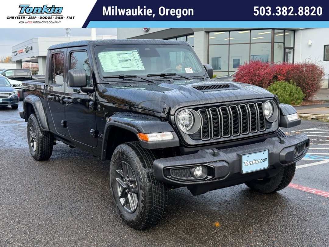 $6,753 off MSRP!2026 Jeep Gladiator Sport S Black Clearcoat 110 Mph Vehicle Max Speed Calibration, 12.3" Touchscreen Display, 2-Piece Body Color Fender Flares, 3.73 Rear Axle Ratio, 4-Wheel Disc Brakes, 4G LTE Wi-Fi Hot Spot, 8 Speakers, ABS brakes, Advanced Brake Assist, Air Conditioning, Air Conditioning with Auto Temp Control, Alexa Built-in, AM/FM radio: SiriusXM with 360L, Apple CarPlay, Apple CarPlay/Android Auto, Automatic Headlamps, Black 3-Piece Hard Top, Brake assist, Cluster 7.0" TFT Color Display, Compass, Connectivity - US/Canada, Convenience Group, Corning Gorilla Glass, Dark Sky Appearance Package, Daytime Running Lamp System, Deep Tint Sunscreen Windows, Delay-off headlights, Driver door bin, Driver vanity mirror, Dual front impact airbags, Dual front side impact airbags, Electronic Stability Control, Emergency/Assistance Call, For Details, Visit DriveUconnect.com, Freedom Panel Storage Bag, Front anti-roll bar, Front Bucket Seats, Front Center Armrest w/Storage, Front Door Locks 2-Door Passive Entry, Front fog lights, Front License Plate Bracket, Front reading lights, Full Speed Forward Collision Warning Plus, Google Android Auto, Heated Front Seats, Heated Steering Wheel, Illuminated entry, Integrated Center Stack Radio, Integrated roll-over protection, Low tire pressure warning, Mold in Color Bumper with Gloss Black, MOPAR All-Weather Slush Mats, MOPAR Spray in Bedliner, MyFlexCare Service Plan, Normal Duty Plus Suspension, Normal Duty Suspension, Occupant sensing airbag, Outside temperature display, Overhead airbag, Panic alarm, ParkView Rear Back-Up Camera, Passenger door bin, Passenger vanity mirror, Performance Hood, Power Heated Mirrors, Power steering, Power windows, Premium Wrapped Steering Wheel, Quick Order Package 24S Sport S, Radio data system, Radio: Uconnect 5 with 12.3" Display, Rear anti-roll bar, Rear reading lights, Rear Sliding Window, Rear Window Defroster, Remote keyless entry, Remote Start System, Security Alarm, SiriusXM Radio Service, SiriusXM with 360L, Speed control, Split folding rear seat, Steering wheel mounted audio controls, Sun Visors with Illuminated Vanity Mirrors, Tachometer, Telescoping steering wheel, Tilt steering wheel, Traction control, Trip computer, Universal Garage Door Opener, USB Host Flip, Variably intermittent wipers, Voltmeter, Wheels: 17" x 7.5" Black Steel Styled, Wheels: 17" x 7.5" Gray. Price includes: $1000 - 2026 National Select Inventory Bonus Cash. Exp. 01/04/2027 $1000 - 2026 National Retail Bonus Cash . Exp. 03/31/2026 $1000 - 2026 West BC Retail Bonus Cash . Exp. 03/31/2026
