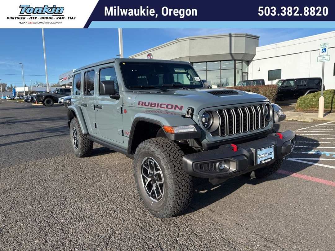 $4,978 off MSRP!2026 Jeep Wrangler Rubicon Anvil Clear Coat 12.3" Touchscreen Display, 4-Wheel Disc Brakes, 4.10 Rear Axle Ratio, 4G LTE Wi-Fi Hot Spot, 8 Speakers, ABS brakes, Air Conditioning, AM/FM radio: SiriusXM with 360L, Apple CarPlay, Apple CarPlay/Android Auto, Automatic temperature control, Aux Battery, Auxiliary Switches, Body Color 3-Piece Hard Top, Body Color Rubicon Highline Flare, Brake assist, Class II Receiver Hitch, Cloth Low-Back Bucket Seats, Compass, Connectivity - US/Canada, Convenience Group, Custom Fuel Wheels and Off-Road Tires, Delay-off headlights, Driver door bin, Driver vanity mirror, Dual front impact airbags, Dual front side impact airbags, Electronic Stability Control, Emergency communication system: Jeep Connect, For More Info, Call 800-643-2112, Freedom Panel Storage Bag, Front anti-roll bar, Front Bucket Seats, Front Center Armrest w/Storage, Front dual zone A/C, Front fog lights, Front License Plate Bracket, Front reading lights, Fully automatic headlights, Google Android Auto, Heated door mirrors, Heated Front Seats, Heated Steering Wheel, Illuminated entry, Integrated Center Stack Radio, Integrated roll-over protection, Low tire pressure warning, MOPAR All-Weather Floor Mats, Myflexcare Service Plan, No Soft Top, Non-Lock Fuel Cap Without Discriminator, Occupant sensing airbag, Outside temperature display, Overhead airbag, Panic alarm, ParkView Rear Back-Up Camera, Passenger door bin, Passenger vanity mirror, Performance Hood, Performance Suspension, Power door mirrors, Power steering, Power windows, Quick Order Package 24R Rubicon, Radio data system, Radio: Uconnect 5 with 12.3" Display, Rear anti-roll bar, Rear reading lights, Rear Window Defroster, Rear Window Wiper/Washer, Remote keyless entry, Security system, SiriusXM Radio Service, SiriusXM with 360L, Speed control, Split folding rear seat, Steel Performance Hood Package, Steering wheel mounted audio controls, Stop-Start Dual Battery System, Tachometer, Telescoping steering wheel, Tilt steering wheel, Traction control, Trip computer, Universal Garage Door Opener, Variably intermittent wipers, Voltmeter, Wheels: 17" x 7.5" Machined/Painted Black. Price includes: $1000 - 2026 National Retail Bonus Cash . Exp. 03/31/2026