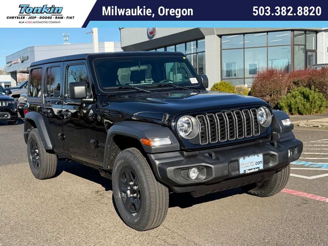 $4,083 off MSRP!2026 Jeep Wrangler Sport Black Clearcoat 12.3" Touchscreen Display, 3.45 Overall Top Gear Ratio, 4-Wheel Disc Brakes, 4G LTE Wi-Fi Hot Spot, 8 Speakers, ABS brakes, Air Conditioning, AM/FM radio: SiriusXM with 360L, Apple CarPlay, Apple CarPlay/Android Auto, Aux Battery, Black 3-Piece Hard Top, Brake assist, Compass, Connectivity - US/Canada, Deep Tint Sunscreen Windows, Delay-off headlights, Driver door bin, Driver vanity mirror, Dual front impact airbags, Dual front side impact airbags, Electronic Stability Control, For More Info, Call 800-643-2112, Freedom Panel Storage Bag, Front anti-roll bar, Front Bucket Seats, Front Center Armrest w/Storage, Front fog lights, Front reading lights, Google Android Auto, Illuminated entry, Integrated Center Stack Radio, Integrated roll-over protection, Low tire pressure warning, MOPAR All-Weather Floor Mats, Myflexcare Service Plan, No Soft Top, Non-Lock Fuel Cap Without Discriminator, Normal Duty Suspension, Occupant sensing airbag, Outside temperature display, Overhead airbag, Panic alarm, ParkView Rear Back-Up Camera, Passenger door bin, Passenger vanity mirror, Power steering, Power windows, Quick Order Package 24B Sport, Radio data system, Radio: Uconnect 5 with 12.3" Display, Rear anti-roll bar, Rear reading lights, Rear Window Defroster, Rear Window Wiper/Washer, Remote keyless entry, SiriusXM Radio Service, SiriusXM with 360L, Speed control, Split folding rear seat, Steering wheel mounted audio controls, Stop-Start Dual Battery System, Tachometer, Telescoping steering wheel, Tilt steering wheel, Traction control, Trip computer, Variably intermittent wipers, Wheels: 17" x 7.5" Black Steel Styled. Price includes: $1000 - 2026 National Retail Bonus Cash . Exp. 03/31/2026