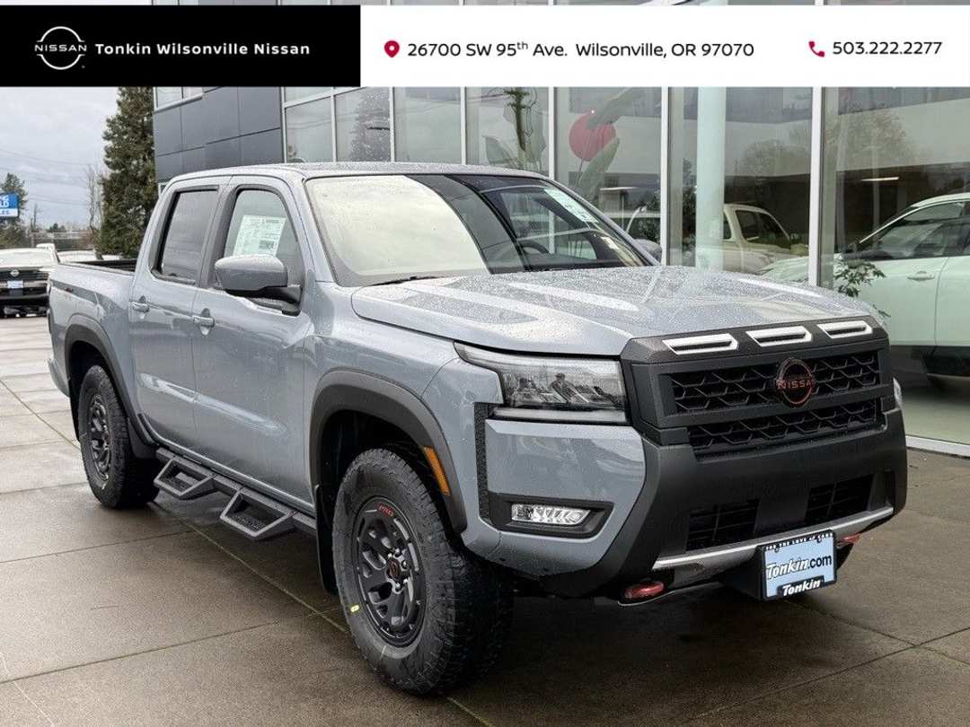 2026 Frontier Nissan PRO-4X Boulder Gray Pearl 3.8L DI DOHC 24V V6 4WD 18/22 City/Highway MPG 4WD, 17" Painted Alloy Wheels, 3.692 Axle Ratio, 4-Wheel Disc Brakes, 6 Speakers, ABS brakes, Air Conditioning, Alloy wheels, AM/FM radio: SiriusXM, Anti-whiplash front head restraints, Auto High-beam Headlights, Automatic temperature control, Blind Spot Warning, Brake assist, Bumpers: body-color, Delay-off headlights, Driver door bin, Driver vanity mirror, Drop-in Bed Liner & Bumper Step, Dual front impact airbags, Dual front side impact airbags, Electronic Stability Control, Emergency communication system, Essentials Kit, Front anti-roll bar, Front Bucket Seats, Front Center Armrest, Front dual zone A/C, Front fog lights, Front reading lights, Front wheel independent suspension, Fully automatic headlights, Heated Front Bucket Seats, Heated front seats, Heated steering wheel, Illuminated entry, Knee airbag, Leather steering wheel, Low tire pressure warning, Mud Flaps, Occupant sensing airbag, Off-Road Style Step Rails, Overhead airbag, Overhead console, Panic alarm, Passenger door bin, Passenger vanity mirror, Power door mirrors, Power driver seat, Power passenger seat, Power steering, Power windows, Premium Paint, PRO Embroidered Premium Cloth Seat Trim, PRO-4X Carpeted Floor Mats, Radio data system, Radio: SiriusXM/AM/FM/Auxiliary/USB Audio System, Rear anti-roll bar, Rear seat center armrest, Rear side impact airbag, Rear step bumper, Remote keyless entry, Security system, Speed control, Speed-sensing steering, Split folding rear seat, Steering wheel mounted audio controls, Tachometer, Telescoping steering wheel, Tilt steering wheel, Traction control, Trip computer, Variably intermittent wipers, Voltmeter, Wireless Apple CarPlay/Wireless Android Auto, 4WD. Price includes: $2500 - Nissan Customer Cash. Exp. 03/31/2026