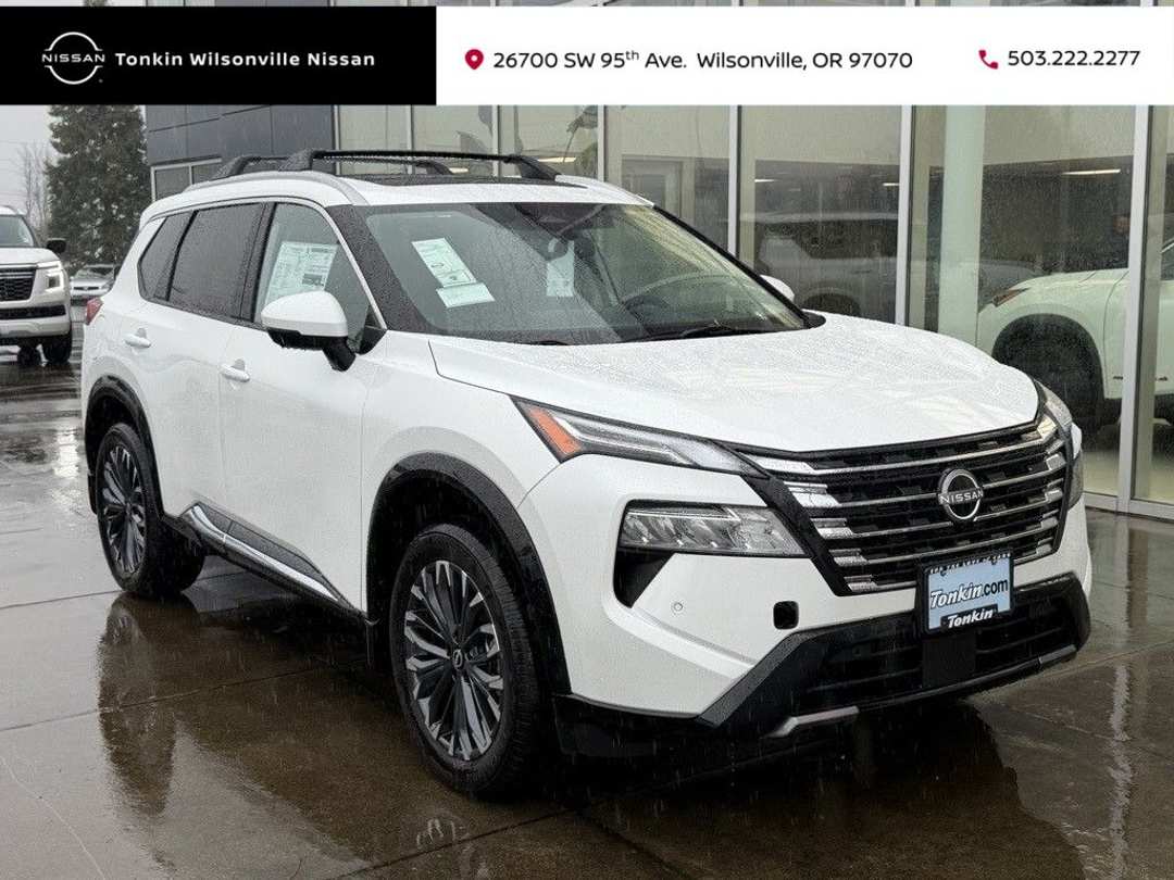 2026 Rogue Nissan Platinum Everest White Pearl/Super Black 1.5L DOHC AWD 28/35 City/Highway MPG AWD, 10 Speakers, 4-Wheel Disc Brakes, ABS brakes, Air Conditioning, Alloy wheels, AM/FM radio: SiriusXM w/360L, Auto High-beam Headlights, Auto-dimming Rear-View mirror, Automatic temperature control, Black Splash Guards (set of 4), Bose Premium Audio System, Brake assist, Bumpers: body-color, Chrome Rear Bumper Protector, Delay-off headlights, Driver door bin, Driver vanity mirror, Dual front impact airbags, Dual front side impact airbags, Electronic Stability Control, Emergency communication system: NissanConnect Services, First Aid Kit, Floor Mats with 2-Piece Cargo Area Protector, Four wheel independent suspension, Front anti-roll bar, Front Bucket Seats, Front Center Armrest, Front dual zone A/C, Front reading lights, Fully automatic headlights, Garage door transmitter: myQ Connected Garage, Head-Up Display, Heads-Up Display, Heated door mirrors, Heated Front Bucket Seats, Heated front seats, Heated Rear Seats, Heated steering wheel, Illuminated entry, Knee airbag, Low tire pressure warning, Memory seat, Motion-Activated Power Liftgate, Navigation system: Google Maps, Occupant sensing airbag, Outside temperature display, Overhead airbag, Overhead console, Panic alarm, Passenger door bin, Passenger vanity mirror, Platinum Premium Package, Power door mirrors, Power driver seat, Power Liftgate, Power moonroof, Power passenger seat, Power steering, Power windows, Premium Paint with Two-Tone, Quilted Semi-Aniline Leather-Appointed Seat Trim, Radio data system, Radio: AM/FM NissanConnect with Navigation, Rear anti-roll bar, Rear reading lights, Rear seat center armrest, Rear side impact airbag, Rear window defroster, Rear window wiper, Remote keyless entry, Roof Rail Cross Bars, Security system, Speed control, Speed-sensing steering, Speed-Sensitive Wipers, Split folding rear seat, Spoiler, Steering wheel mounted audio controls, Tachometer, Telescoping steering wheel, Tilt steering wheel, Traction control, Tri-Zone Automatic Temperature Control, Trip computer, Turn signal indicator mirrors, Variably intermittent wipers, Wheels: 19" Unique Dark Painted Aluminum Alloy, Wireless Apple CarPlay/Wireless Android Auto, AWD. Price includes: $3500 - Nissan Customer Cash. Exp. 03/31/2026