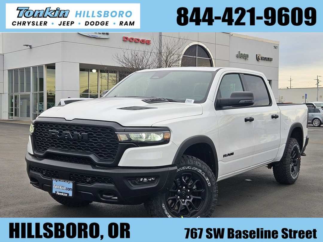 2026 Ram 1500 Rebel Bright White Clearcoat 3.0L I6 4WD 8-Speed Automatic10 Speakers, 3.92 Rear Axle Ratio, 4 Way Front Headrests, 4-Wheel Disc Brakes, 4G LTE Wi-Fi Hot Spot, ABS brakes, Active Noise Control System, Air Conditioning, Alloy wheels, AM/FM radio: SiriusXM with 360L, Apple CarPlay, Apple CarPlay/Android Auto, Auto High-beam Headlights, Auto Power-Folding Mirrors, Auto-Dimming Exterior Driver Mirror, Auto-dimming Rear-View mirror, Automatic temperature control, Bed Utility Group, Black Exterior Mirrors, Black Premium Power Mirrors, Brake assist, Bucket Seats, Cloth/Vinyl Bucket Seats, Compass, Connected Travel and Traffic Services, Connectivity - US/Canada, Convex Wide-Angle Exterior Mirror Insert, Delay-off headlights, Disassociated Touchscreen Display, Driver door bin, Driver vanity mirror, Dual front impact airbags, Dual front side impact airbags, Electronic Stability Control, Exterior 115V AC Outlet, Exterior Mirrors Courtesy Lamps, Exterior Mirrors with Heating Element, Exterior Mirrors with Supplemental Signals, Front anti-roll bar, Front Bucket Seats, Front Center Armrest w/Storage, Front dual zone A/C, Front fog lights, Front License Plate Bracket, Front reading lights, Front Seat Back Map Pockets, Front wheel independent suspension, Full Length Upgraded Floor Console, Fully automatic headlights, Garage door transmitter, Global Telematics Box Module, Google Android Auto, GPS Antenna Input, GPS Navigation, HD Radio, Heated door mirrors, Heated Front Seats, Heated front seats, Heated Steering Wheel, Heated steering wheel, Illuminated entry, Integrated Center Stack Radio, Integrated Voice Command with Bluetooth, Leather steering wheel, Low tire pressure warning, Manual Folding Exterior Mirrors, Manufacturer's Statement of Origin, MOPAR 4 Adjustable Cargo Tie-Down Hooks, MOPAR Spray in Bedliner, Navigation System, Occupant sensing airbag, Off-Road Information Pages, Outside temperature display, Overhead airbag, Overhead console, Panic alarm, ParkView Rear Back-Up Camera, Passenger door bin, Passenger vanity mirror, Power 2-Way Driver Lumbar Adjust, Power Adjust 8-Way Driver Seat, Power Adjustable Pedals, Power door mirrors, Power driver seat, Power steering, Power windows, Quick Order Package 21W Rebel, Radio data system, Radio: Uconnect 5 Navigation with 12.0" Display, Rear 60/40 Folding Seat, Rear anti-roll bar, Rear seat center armrest, Rear step bumper, Rear Window Defroster, Rebel Level 1 Equipment Group, Remote keyless entry, Remote Tailgate Release, SiriusXM Radio Service, SiriusXM with 360L, Speed control, Split folding rear seat, Steering wheel mounted audio controls, Tachometer, Telescoping steering wheel, Tilt steering wheel, Traction control, Trailer Brake Control, Trip computer, USB Host Flip, Variably intermittent wipers, Voltmeter, Wheels: 18" x 8.0" Painted Mid-Gloss Black, Wireless Charging Pad. Price includes: $1000 - 2026 National Bonus Cash . Exp. 03/31/2026 $3500 - 2026 National Retail Bonus Cash . Exp. 03/31/2026