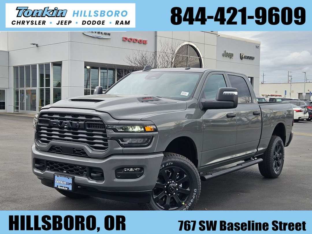2026 Ram 2500 Tradesman Ceramic Gray Clearcoat 6.4L V8 4WD 8-Speed Automatic115-Volt Auxiliary Front Power Outlet, 12" Touchscreen Display, 2 Way Rear Headrest Seat, 3.73 Axle Ratio, 4 Way Front Headrests, 4-Wheel Disc Brakes, 40/20/40 Split Bench Seat, 400W Inverter, 4G LTE Wi-Fi Hot Spot, 6 Speakers, ABS brakes, Air Conditioning, Air Conditioning ATC with Dual Zone Control, Alexa Built-in, AM/FM radio: SiriusXM, Anti-Spin Differential Rear Axle, Apple CarPlay, Apple CarPlay/Android Auto, Auto Power-Folding Mirrors, Auto-Dimming Rear-View Mirror, Bed Convenience Group, Black Exterior Mirrors, Black Wheel Center Hub, Body Color Grille-Surround, Brake assist, Carpet Floor Covering, Cloth 40/20/40 Bench Seat, Compass, Connected Travel and Traffic Services, Connectivity - US/Canada, Delay-off headlights, Disassociated Touchscreen Display, Driver door bin, Dual front impact airbags, Dual front side impact airbags, Electronic Stability Control, Emergency Vehicle Alert System (EVAS), Exterior 115V AC Outlet, Exterior Mirrors Courtesy Lamps, Exterior Mirrors with Heating Element, Exterior Mirrors with Supplemental Signals, For Details, Visit DriveUconnect.com, For More Info, Call 800-643-2112, Forward and Reverse Utility Lights, Front and Rear Floor Mats, Front anti-roll bar, Front Armrest with Cupholders, Front Center Armrest w/Storage, Front fog lights, Front License Plate Bracket, Front reading lights, Fully automatic headlights, Global Telematics Box Module, Google Android Auto, GPS Antenna Input, GPS Navigation, HD Radio, Illuminated entry, Integrated Voice Command with Bluetooth, LED Bed Lighting, Low tire pressure warning, Manual Adjust 4-Way Driver Seat, Manual Adjust 4-Way Front Passenger Seat, Manual Folding Exterior Mirrors, Manual Telescoping Mirrors, Mirror Running Lights, Mopar Black Tubular Side Steps, MOPAR Spray in Bedliner, MyFlexCare Service Plan, Occupant sensing airbag, Off-Road Info Pages, Outside temperature display, Overhead airbag, Overhead console, Painted Front Bumper, Painted Rear Bumper, Panic alarm, ParkSense Front/Rear Park Assist System, ParkView Rear Back-Up Camera, Passenger door bin, Passenger vanity mirror, Power Adjust Mirrors, Power Heated Folding Telescopic Mirrors, Power steering, Power Telescoping Mirrors, Power windows, Power-Adjustable Convex Aux Mirrors, Quick Order Package 2UC Black Express, Radio data system, Radio: Uconnect 5 Navigation with 12.0" Display, Radio: Uconnect 5 with 8.4" Display, Rear anti-roll bar, Rear Folding Seat, Rear Power Sliding Window, Rear step bumper, Rear window defroster, Remote keyless entry, Remote USB Port - Charge Only, Selectable Tire Fill Alert, SiriusXM Radio Service, SiriusXM with 360L, Speed control, Sport Performance Hood, Storage Tray, Tachometer, Tilt steering wheel, Tinted Acoustic Windshield Glass, Traction control, Tradesman Level 1 Equipment Group, Trailer Tow Pages, Variably intermittent wipers, Voltmeter, Wheels: 17" x 7.5" Black Steel Styled, Wheels: 20" x 8.0" Black Painted Aluminum. Price includes: $1000 - 2026 National Bonus Cash . Exp. 03/31/2026