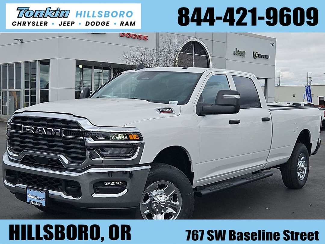 2026 Ram 2500 Tradesman Bright White Clearcoat 6.4L V8 4WD 8-Speed Automatic115-Volt Auxiliary Front Power Outlet, 12" Touchscreen Display, 2 Way Rear Headrest Seat, 4 Way Front Headrests, 4-Wheel Disc Brakes, 40/20/40 Split Bench Seat, 400W Inverter, 4G LTE Wi-Fi Hot Spot, 50 Gallon Fuel Tank, 5th Wheel/Gooseneck Towing Prep Group, 6 Speakers, ABS brakes, Air Conditioning, Air Conditioning ATC with Dual Zone Control, Alexa Built-in, AM/FM radio: SiriusXM, Anti-Spin Differential Rear Axle, Apple CarPlay, Apple CarPlay/Android Auto, Auto-Dimming Rear-View Mirror, Black Exterior Mirrors, Black Wheel Center Hub, Brake assist, Bright Front Bumper, Bright Rear Bumper, Carpet Floor Covering, Center Hub, Chrome Grille Surround, Cloth 40/20/40 Bench Seat, Compass, Connected Travel and Traffic Services, Connectivity - US/Canada, Dash Pass Thru Wire Circuits, Delay-off headlights, Disassociated Touchscreen Display, Driver door bin, Dual front impact airbags, Dual front side impact airbags, Electronic Stability Control, Emergency Vehicle Alert System (EVAS), Exterior 115V AC Outlet, Exterior Mirrors Courtesy Lamps, Exterior Mirrors with Heating Element, Exterior Mirrors with Supplemental Signals, For Details, Visit DriveUconnect.com, For More Info, Call 800-643-2112, Front and Rear Floor Mats, Front anti-roll bar, Front Armrest with Cupholders, Front Center Armrest w/Storage, Front fog lights, Front reading lights, Fully automatic headlights, Global Telematics Box Module, Google Android Auto, GPS Antenna Input, GPS Navigation, HD Radio, Illuminated entry, Instrument Panel Mounted Auxiliary Switches, Integrated Voice Command with Bluetooth, Low tire pressure warning, Manual Adjust 4-Way Driver Seat, Manual Adjust 4-Way Front Passenger Seat, Manual Folding Exterior Mirrors, Manual Telescoping Mirrors, Matte Black Mesh Grille with Chrome, Mirror Running Lights, Mopar Black Tubular Side Steps, MyFlexCare Service Plan, Occupant sensing airbag, Off-Road Info Pages, Outside temperature display, Overhead airbag, Overhead console, Panic alarm, ParkSense Front/Rear Park Assist System, ParkView Rear Back-Up Camera, Passenger door bin, Passenger vanity mirror, Power Adjust Mirrors, Power Heated Folding Telescope Mirrors, Power steering, Power windows, Power-Adjustable Convex Aux Mirrors, Quick Order Package 2UA Tradesman, Radio data system, Radio: Uconnect 5 Navigation with 12.0" Display, Radio: Uconnect 5 with 8.4" Display, Rear anti-roll bar, Rear Folding Seat, Rear Power Sliding Window, Rear step bumper, Rear window defroster, Remote keyless entry, Remote USB Port - Charge Only, Selectable Tire Fill Alert, SiriusXM Radio Service, SiriusXM with 360L, Speed control, Storage Tray, Tachometer, Tilt steering wheel, Tinted Acoustic Windshield Glass, Traction control, Tradesman Level 2 Equipment Group, Trailer Tow Pages, Variably intermittent wipers, Voltmeter, Wheels: 17" x 7.5" Black Steel Styled, Wheels: 18" x 8.0" Steel Chrome Clad. Price includes: $1000 - 2026 National Bonus Cash . Exp. 03/31/2026