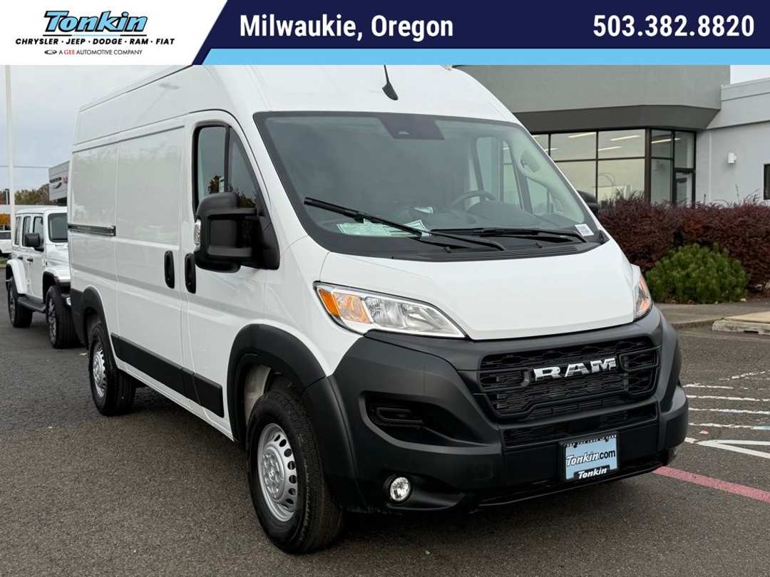 $10,243 off MSRP!2026 Ram ProMaster 2500 High Roof Bright White Clearcoat 100 Amp Battery, 115V Auxiliary Power Outlet, 12V Rear Auxiliary Power Outlet, 220 Amp Alternator, 4 Speakers, 4-Way Manual Adjust Front Passenger Seat, 4-Wheel Disc Brakes, 4.08 Axle Ratio, 4G LTE Wi-Fi Hotspot, ABS brakes, Adaptive Cruise Control with Stop and Go, Air Conditioning, AM/FM radio: SiriusXM, Apple CarPlay, Apple CarPlay/Android Auto, Black/Gray Seats, Bodyside moldings, Brake assist, Cargo Net, Class IV Receiver Hitch, Cloth Bucket Seats, Connectivity - US/Canada, Convenience Group, Driver door bin, Driver Seat Armrest, Driver's Seat Mounted Armrest, Electronic Stability Control, Exterior Mirrors with Heating Element, Exterior Mirrors with Supplemental Signals, For Details, Visit DriveUconnect.com, For More Info, Call 800-643-2112, Front anti-roll bar, Front Bucket Seats, Front Fog Lamps, Front License Plate Bracket, Front reading lights, Front wheel independent suspension, Global Telematics Box Module, Google Android Auto, GPS Antenna Input, Heavy Duty Suspension, Illuminated entry, Integrated Center Stack Radio, Low tire pressure warning, Manufacturer's Statement of Origin, MOPAR Cargo Compartment Floor Mat, MOPAR Rear Assist Handles, MyFlexCare Service Plan, Outside temperature display, Overhead airbag, Overhead console, ParkSense Rear Park Assist System, ParkView Rear Back-Up Camera, Passenger Bucket Seat, Passenger door bin, Power Adjust Mirrors, Power Folding/Heated Mirrors, Power Group, Power steering, Power windows, Power-Adjustable Convex Aux Mirrors, Power-Folding Mirrors, Quick Order Package 22B Tradesman, Radio: Uconnect 5 with 7" Display, Rear Cargo LED Lamp, Remote keyless entry, Remote Start System, Shelf Above Roof Trim, SiriusXM Radio Service, Steering wheel mounted audio controls, Storage Group, Tachometer, Telescoping steering wheel, Traction control, Trip computer, Turn signal indicator mirrors, Underseat Storage Tray, Variably intermittent wipers, Wheel Center Cap, Wheels: 16" x 6.0" Steel. Price includes: $4000 - 2026 National Bonus Cash . Exp. 03/31/2026