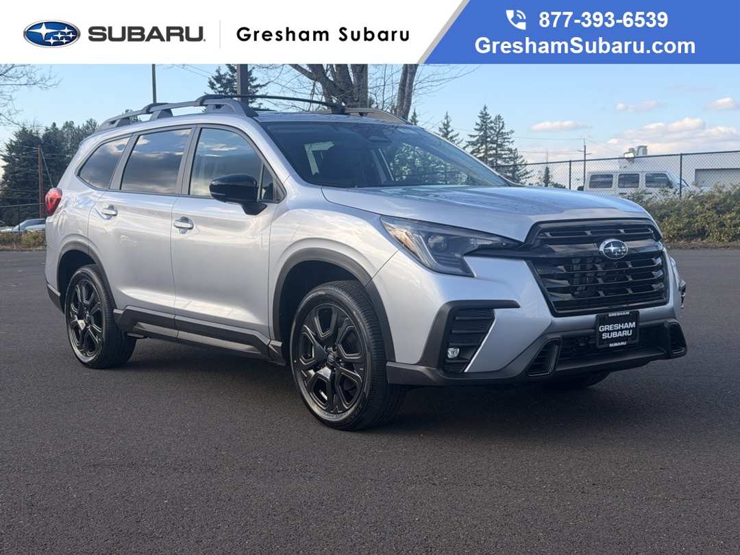 14 Speakers, 3rd row seats: bench, 4-Wheel Disc Brakes, ABS brakes, Air Conditioning, Alloy wheels, AM/FM radio: SiriusXM with 360L, Apple CarPlay & Android Auto, Auto High-beam Headlights, Auto-dimming Rear-View mirror, Automatic temperature control, Brake assist, Bumpers: body-color, Compass, Delay-off headlights, Driver door bin, Driver vanity mirror, Dual front impact airbags, Dual front side impact airbags, Electronic Stability Control, Emergency communication system: MySubaru Companion (5-years free), Exterior Parking Camera Rear, Four wheel independent suspension, Front anti-roll bar, Front Bucket Seats, Front Center Armrest, Front dual zone A/C, Front fog lights, Front reading lights, Fully automatic headlights, Garage door transmitter: HomeLink, harman/kardon® Speakers, Heated and Ventilated Front Bucket Seats, Heated door mirrors, Heated front seats, Heated rear seats, Heated steering wheel, HVAC memory, Illuminated entry, Knee airbag, Leather Shift Knob, Leather steering wheel, Low tire pressure warning, Memory seat, Navigation system: MySubaru Navigator (1-year trial), Occupant sensing airbag, Outside temperature display, Overhead airbag, Overhead console, Panic alarm, Passenger door bin, Passenger vanity mirror, Perforated Nappa Leather-Trimmed Upholstery, Power door mirrors, Power driver seat, Power Liftgate, Power moonroof, Power passenger seat, Power steering, Power windows, Radio data system, Radio: Subaru 11.6" Multimedia System with Navigation, Rain sensing wipers, Rear air conditioning, Rear anti-roll bar, Rear reading lights, Rear window defroster, Rear window wiper, Reclining 3rd row seat, Remote keyless entry, Security system, Speed control, Speed-sensing steering, Split folding rear seat, Spoiler, Steering wheel mounted audio controls, Tachometer, Telescoping steering wheel, Tilt steering wheel, Traction control, Trip computer, Turn signal indicator mirrors, Variably intermittent wipers, Ventilated front seats, Wheels: 20" x 7.5 J Black Finish Aluminum Alloy. Recent Arrival! 2026 Subaru Ascent Onyx Edition Touring 4D Sport Utility Lineartronic CVT 2.4L 4-Cylinder DOHC 16V AWD Ice SilverVisit Gresham Subaru online at www.GreshamSubaru.com and see why we service Portland and Vancouver as The BIG Subaru Store with the SMALL Prices!!!
