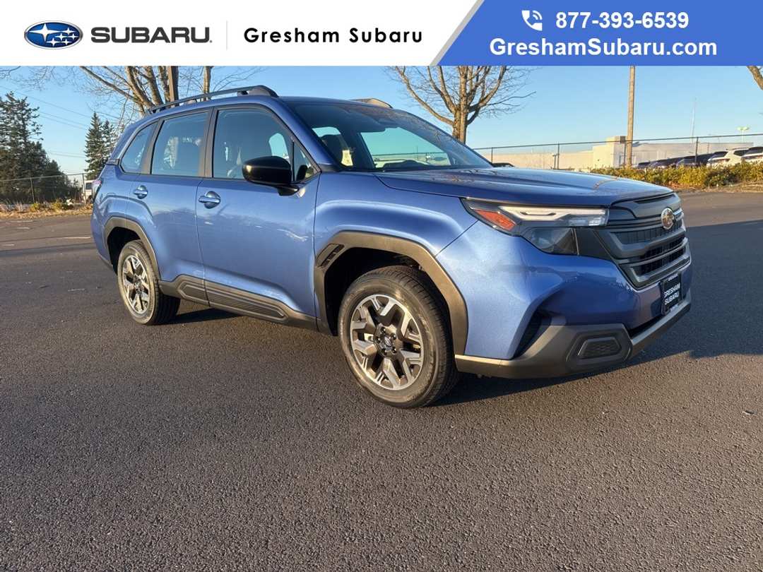 4 Speakers, 4-Wheel Disc Brakes, ABS brakes, Air Conditioning, Alloy wheels, AM/FM radio: SiriusXM, Anti-whiplash front head restraints, Auto High-beam Headlights, Automatic temperature control, Brake assist, Bumpers: body-color, Driver door bin, Driver vanity mirror, Dual front impact airbags, Dual front side impact airbags, Electronic Stability Control, Exterior Parking Camera Rear, Four wheel independent suspension, Front anti-roll bar, Front Bucket Seats, Front Center Armrest, Front dual zone A/C, Front reading lights, Fully automatic headlights, Hexagonal Patterned Cloth Upholstery, Illuminated entry, Knee airbag, Low tire pressure warning, Occupant sensing airbag, Outside temperature display, Overhead airbag, Overhead console, Panic alarm, Passenger door bin, Passenger vanity mirror, Power door mirrors, Power steering, Power windows, Radio data system, Radio: Subaru Dual 7.0" Multimedia System, Rear anti-roll bar, Rear window defroster, Rear window wiper, Remote keyless entry, Security system, Speed control, Speed-sensing steering, Split folding rear seat, Spoiler, Steering wheel mounted audio controls, Tachometer, Telescoping steering wheel, Tilt steering wheel, Traction control, Trip computer, Variably intermittent wipers, Wheels: 17" x 7.0 J Dark Metallic Aluminum-Alloy. 2026 Subaru Forester 4D Sport Utility Lineartronic CVT 2.5L 4-Cylinder DOHC 16V AWD BlueVisit Gresham Subaru online at www.GreshamSubaru.com and see why we service Portland and Vancouver as The BIG Subaru Store with the SMALL Prices!!!