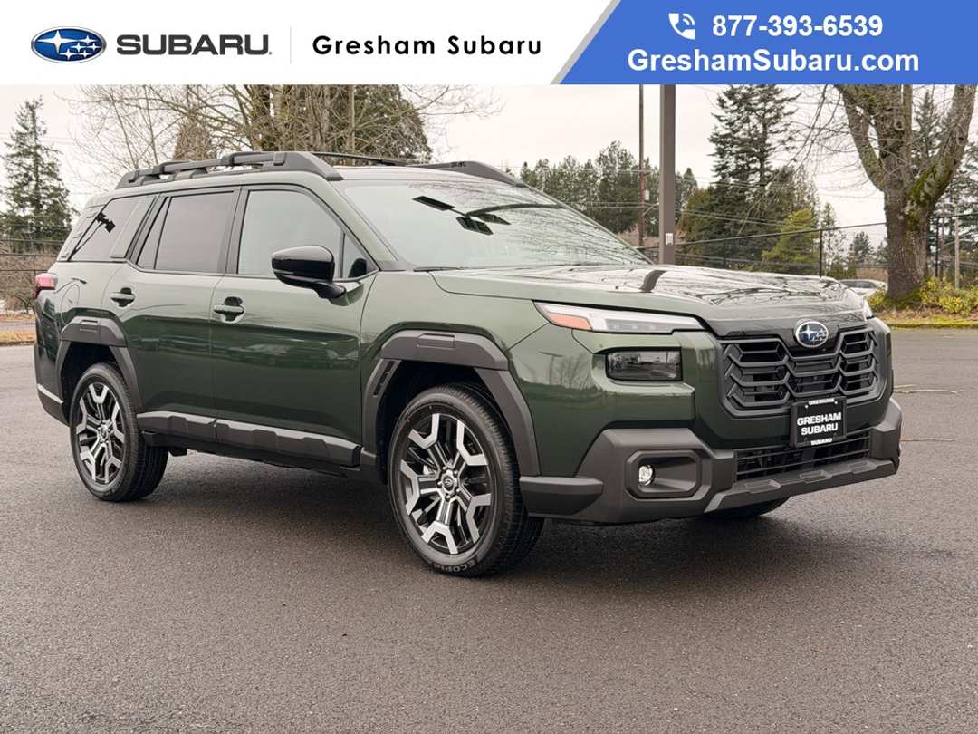 12 Speakers, 4-Wheel Disc Brakes, ABS brakes, Aero Crossbar Set, Air Conditioning, All-Weather Floor Liners, Alloy wheels, AM/FM radio: SiriusXM with 360L, Anti-whiplash front head restraints, Auto High-beam Headlights, Auto-Dimming Exterior Mirror with Approach Light, Auto-dimming Rear-View mirror, Automatic temperature control, Blind Spot Warning, Brake assist, Bumpers: body-color, Compass, Driver door bin, Driver vanity mirror, Dual front impact airbags, Dual front side impact airbags, Electronic Stability Control, Emergency communication system: MySubaru Companion (5-years free), Exterior Parking Camera Rear, Four wheel independent suspension, Front anti-roll bar, Front Bucket Seats, Front Center Armrest w/Storage, Front dual zone A/C, Front fog lights, Front reading lights, Fully automatic headlights, Garage door transmitter: HomeLink, harman/kardon® Speakers, Heated and Ventilated Front Bucket Seats, Heated door mirrors, Heated front seats, Heated rear seats, Heated steering wheel, HVAC memory, Illuminated entry, Knee airbag, Leather steering wheel, LED Upgrade, Low tire pressure warning, Memory seat, Nappa Leather-Trimmed Perforated Upholstery, Navigation system: MySubaru Navigator (1-year trial), Occupant sensing airbag, Outside temperature display, Overhead airbag, Overhead console, Panic alarm, Passenger door bin, Passenger vanity mirror, Power door mirrors, Power driver seat, Power Liftgate, Power moonroof, Power passenger seat, Power steering, Power windows, Radio: Subaru 12.1" Multimedia System with Navigation, Rain sensing wipers, Rear anti-roll bar, Rear Bumper Cover, Rear seat center armrest, Rear Seatback Protector, Rear window defroster, Rear window wiper, Remote keyless entry, Security system, Speed control, Speed-sensing steering, Split folding rear seat, Spoiler, Standard Model, Steering wheel mounted audio controls, Tachometer, Telescoping steering wheel, Tilt steering wheel, Traction control, Trip computer, Turn signal indicator mirrors, Variably intermittent wipers, Ventilated front seats, Wheels: 19" x 7J Black Aluminum-Alloy. Recent Arrival! 2026 Subaru Outback Touring XT 4D Sport Utility CVT Lineartronic 2.4L 4-Cylinder DOHC 16V AWD Deep Emerald Green PearlVisit Gresham Subaru online at www.GreshamSubaru.com and see why we service Portland and Vancouver as The BIG Subaru Store with the SMALL Prices!!!