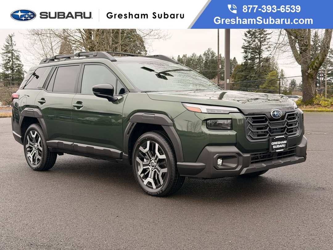 12 Speakers, 4-Wheel Disc Brakes, ABS brakes, Air Conditioning, Alloy wheels, AM/FM radio: SiriusXM with 360L, Anti-whiplash front head restraints, Auto High-beam Headlights, Auto-dimming Rear-View mirror, Automatic temperature control, Blind Spot Warning, Brake assist, Bumpers: body-color, Compass, Driver door bin, Driver vanity mirror, Dual front impact airbags, Dual front side impact airbags, Electronic Stability Control, Emergency communication system: MySubaru Companion (5-years free), Exterior Parking Camera Rear, Four wheel independent suspension, Front anti-roll bar, Front Bucket Seats, Front Center Armrest w/Storage, Front dual zone A/C, Front fog lights, Front reading lights, Fully automatic headlights, Garage door transmitter: HomeLink, harman/kardon® Speakers, Heated and Ventilated Front Bucket Seats, Heated door mirrors, Heated front seats, Heated rear seats, Heated steering wheel, HVAC memory, Illuminated entry, Knee airbag, Leather steering wheel, Low tire pressure warning, Memory seat, Nappa Leather-Trimmed Perforated Upholstery, Navigation system: MySubaru Navigator (1-year trial), Occupant sensing airbag, Outside temperature display, Overhead airbag, Overhead console, Panic alarm, Passenger door bin, Passenger vanity mirror, Power door mirrors, Power driver seat, Power Liftgate, Power moonroof, Power passenger seat, Power steering, Power windows, Radio: Subaru 12.1" Multimedia System with Navigation, Rain sensing wipers, Rear anti-roll bar, Rear seat center armrest, Rear window defroster, Rear window wiper, Remote keyless entry, Security system, Speed control, Speed-sensing steering, Split folding rear seat, Spoiler, Steering wheel mounted audio controls, Tachometer, Telescoping steering wheel, Tilt steering wheel, Traction control, Trip computer, Turn signal indicator mirrors, Variably intermittent wipers, Ventilated front seats, Wheels: 19" x 7J Black Aluminum-Alloy. Recent Arrival! 2026 Subaru Outback Touring XT 4D Sport Utility CVT Lineartronic 2.4L 4-Cylinder DOHC 16V AWD Emerald GreenVisit Gresham Subaru online at www.GreshamSubaru.com and see why we service Portland and Vancouver as The BIG Subaru Store with the SMALL Prices!!!