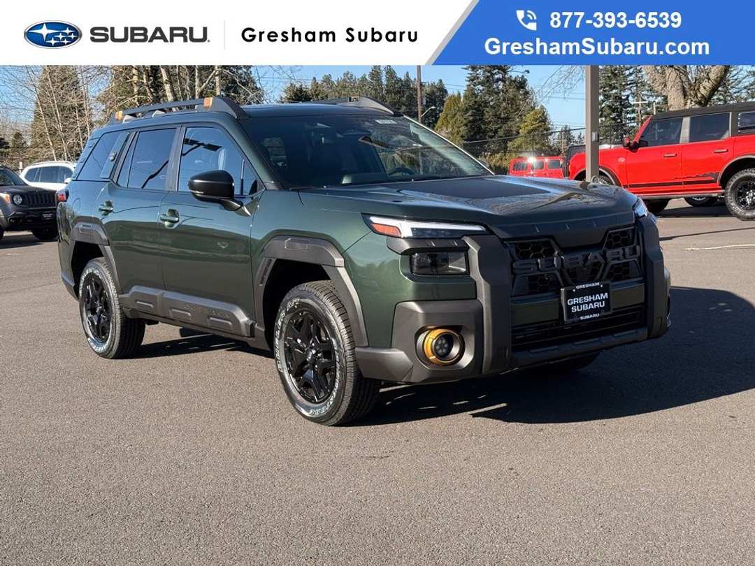 12 Speakers, 4-Wheel Disc Brakes, ABS brakes, Air Conditioning, Alloy wheels, AM/FM radio: SiriusXM with 360L, Anti-whiplash front head restraints, Auto High-beam Headlights, Automatic temperature control, Blind Spot Warning, Brake assist, Bumpers: body-color, Driver door bin, Driver vanity mirror, Dual front impact airbags, Dual front side impact airbags, Electronic Stability Control, Emergency communication system: MySubaru Companion (5-years free), Exterior Parking Camera Rear, Four wheel independent suspension, Front anti-roll bar, Front Bucket Seats, Front Center Armrest w/Storage, Front dual zone A/C, Front fog lights, Front reading lights, Fully automatic headlights, harman/kardon® Speakers, Heated and Ventilated Front Bucket Seats, Heated door mirrors, Heated Front Bucket Seats, Heated front seats, Heated rear seats, Heated steering wheel, HVAC memory, Illuminated entry, Knee airbag, Leather Shift Knob, Leather steering wheel, Low tire pressure warning, Moonroof and Navigation and Surround View Monitor and Ventilated Seats, Nappa Leather Upholstery, Occupant sensing airbag, Outside temperature display, Overhead airbag, Overhead console, Panic alarm, Passenger door bin, Passenger vanity mirror, Power door mirrors, Power driver seat, Power Liftgate, Power Moonroof, Power steering, Power windows, Power-Folding Heated Exterior Mirrors, Radio: Subaru 12.1" Multimedia System, Radio: Subaru 12.1" Multimedia System with Navigation, Rain sensing wipers, Rear anti-roll bar, Rear seat center armrest, Rear window defroster, Rear window wiper, Remote keyless entry, Security system, Speed control, Speed-sensing steering, Split folding rear seat, Spoiler, StarTex-Trimmed Upholstery, Steering wheel mounted audio controls, Surround View Monitor, Tachometer, Telescoping steering wheel, Tilt steering wheel, Traction control, Trip computer, Turn signal indicator mirrors, Variably intermittent wipers, Wheels: 17" x 7J Matte Black Finish Aluminum-Alloy. 2026 Subaru Outback Wilderness 4D Sport Utility CVT Lineartronic 2.4L 4-Cylinder DOHC 16V AWD Deep Emerald Green PearlVisit Gresham Subaru online at www.GreshamSubaru.com and see why we service Portland and Vancouver as The BIG Subaru Store with the SMALL Prices!!!