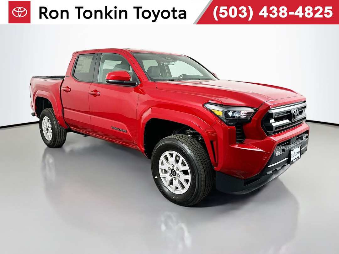 2026 Toyota Tacoma 2.4L 4-Cylinder 8-Speed Automatic 4WD SR5 4D Double Cab Red 3.583 Axle Ratio, 4-Wheel Disc Brakes, 6 Speakers, ABS brakes, Air Conditioning, All Weather Floor Liners, Alloy wheels, AM/FM radio: SiriusXM, Anti-whiplash front head restraints, Apple CarPlay/Android Auto, Auto High-beam Headlights, Auto-dimming Rear-View mirror, Bed Step, Black Badge Overlay, Black Tailgate Insert, Brake assist, Bumpers: body-color, Door Edge Film, Door Panel Scuff Protector, Driver door bin, Dual front impact airbags, Dual front side impact airbags, Electronic Stability Control, Emergency communication system: Safety Connect (up to 10-year trial subscription), Exterior Parking Camera Rear, Fabric Seat Trim, Four wheel independent suspension, Front anti-roll bar, Front Bucket Seats, Front Center Armrest, Front fog lights, Front reading lights, Fully automatic headlights, Heated door mirrors, Heated Seats, Illuminated entry, JBL Premium Audio, Knee airbag, Low tire pressure warning, Multimedia Glass Screen Protector, Occupant sensing airbag, Outside temperature display, Overhead airbag, Overhead console, Panic alarm, Passenger door bin, Power door mirrors, Power steering, Power windows, Radio: 8" Toyota Audio Multimedia, Rear step bumper, Rear window defroster, Remote keyless entry, Speed control, Speed-sensing steering, Split folding rear seat, Spray-on Bed Liner, Steering wheel mounted audio controls, Tachometer, Telescoping steering wheel, Tilt steering wheel, Traction control, Trip computer, USB Rear Power Port, Variably intermittent wipers, Wheels: 17" Styled Alloy. 19/24 City/Highway MPGSome factory rebates may require factory financing, some special finance or lease rates are in lieu of factory rebates of specific make or model vehicles. Tax, title, licensing, documentation fee of $200, and dealer installed accessories are not included. Prices not available for Fleet or Commercial business's. Please confirm the accuracy of the included equipment by calling us prior to purchase. Price does not include Tax, Title, and License.