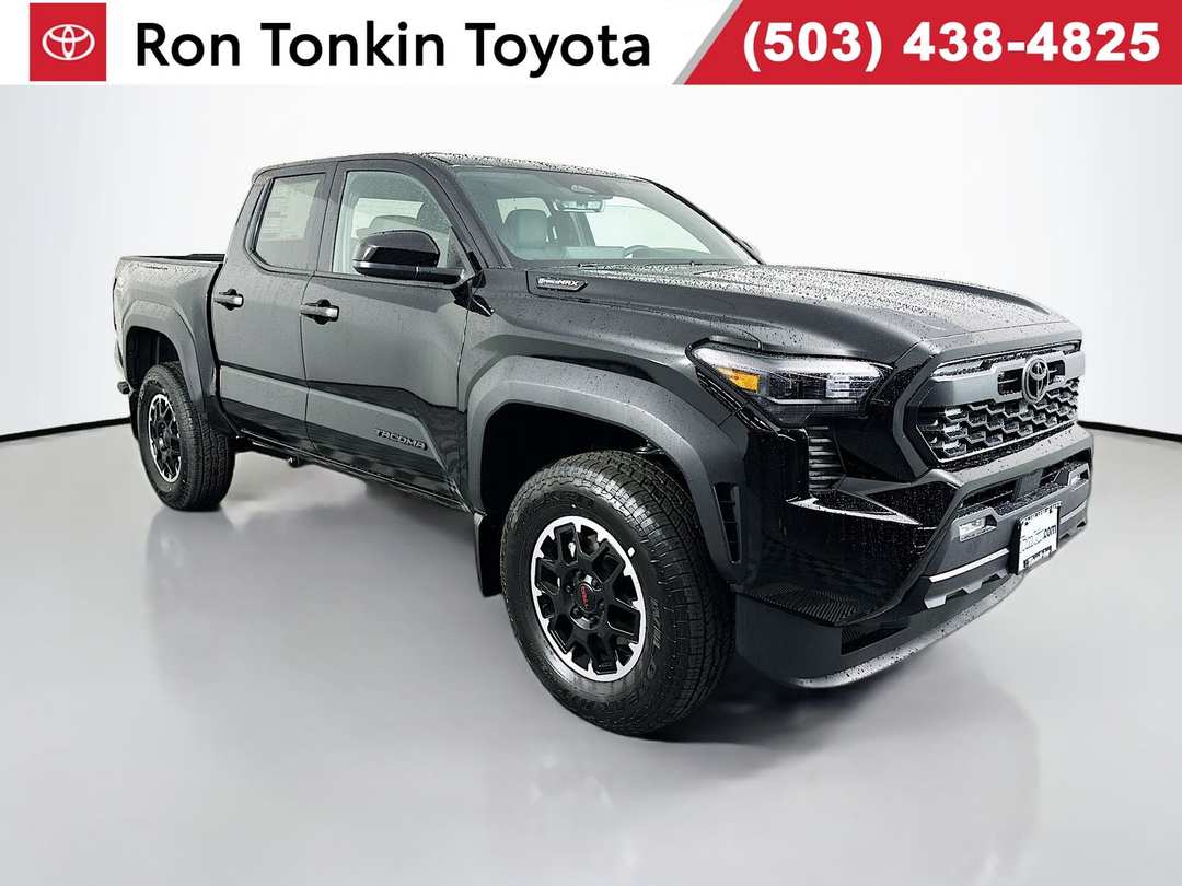 2026 Toyota Tacoma Hybrid 2.4L 4-Cylinder 8-Speed Automatic 4WD TRD Off Road 4D Crew Cab Black 18" Alloy Wheels, 3.583 Axle Ratio, 4-Wheel Disc Brakes, 6 Speakers, ABS brakes, Air Conditioning, All Weather Floor Liners, Alloy wheels, AM/FM radio: SiriusXM, Anti-whiplash front head restraints, Apple CarPlay/Android Auto, Auto High-beam Headlights, Auto-dimming Rear-View mirror, Automatic temperature control, Bed Step, Black Tailgate Insert, Brake assist, Bumpers: body-color, Door Edge Film, Door Panel Scuff Protector, Driver door bin, Driver vanity mirror, Dual front impact airbags, Dual front side impact airbags, Electronic Stability Control, Emergency communication system: Safety Connect (up to 10-year trial subscription), Exterior Parking Camera Rear, Fabric Seat Trim, Four wheel independent suspension, Front anti-roll bar, Front Bucket Seats, Front Center Armrest, Front fog lights, Front reading lights, Fully automatic headlights, Heated door mirrors, Heated Front Seats, Illuminated entry, JBL Premium Audio, Knee airbag, Leather Shift Knob, Leather steering wheel, Low tire pressure warning, Mudguards, Multimedia Glass Screen Protector, Navigation system: Drive Connect Cloud Navigation (1-year trial subscription), Occupant sensing airbag, Outside temperature display, Overhead airbag, Overhead console, Panic alarm, Passenger door bin, Passenger vanity mirror, Power door mirrors, Power steering, Power windows, Radio: 14" Toyota Audio Multimedia, Radio: 8" Toyota Audio Multimedia, Radio: Premium Audio with 14" Display, Rear step bumper, Rear window defroster, Remote keyless entry, Security system, SofTex Seat Trim, Speed control, Speed-sensing steering, Split folding rear seat, Spray-on Bed Liner, Steering wheel mounted audio controls, Tachometer, Telescoping steering wheel, Tilt steering wheel, Traction control, TRD Off Road Package, Trip computer, Turn signal indicator mirrors, Variably intermittent wipers. Priced below KBB Fair Purchase Price! 22/24 City/Highway MPGSome factory rebates may require factory financing, some special finance or lease rates are in lieu of factory rebates of specific make or model vehicles. Tax, title, licensing, documentation fee of $200, and dealer installed accessories are not included. Prices not available for Fleet or Commercial business's. Please confirm the accuracy of the included equipment by calling us prior to purchase. Price does not include Tax, Title, and License.