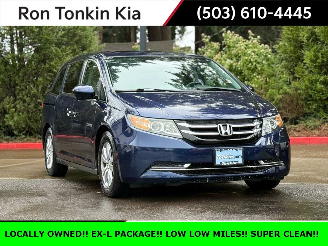 2015 Honda Odyssey EX-L Obsidian Blue Pearl 3.5L V6 SOHC i-VTEC 24V 17" x 7" Alloy Wheels, 3rd row seats: split-bench, 4-Wheel Disc Brakes, 4.25 Axle Ratio, 7 Speakers, ABS brakes, Air Conditioning, Alloy wheels, AM/FM radio: SiriusXM, Anti-whiplash front head restraints, Auto-dimming Rear-View mirror, Automatic temperature control, Brake assist, Bumpers: body-color, CD player, Delay-off headlights, Driver door bin, Driver vanity mirror, Driver's Seat Mounted Armrest, Dual front impact airbags, Dual front side impact airbags, Electronic Stability Control, Exterior Parking Camera Rear, Four wheel independent suspension, Front anti-roll bar, Front Bucket Seats, Front dual zone A/C, Front reading lights, Fully automatic headlights, Garage door transmitter: HomeLink, Heated door mirrors, Heated Front Bucket Seats, Heated front seats, Illuminated entry, Leather Seat Trim, Leather Shift Knob, Leather steering wheel, Low tire pressure warning, Occupant sensing airbag, Outside temperature display, Overhead airbag, Overhead console, Panic alarm, Passenger door bin, Passenger seat mounted armrest, Passenger vanity mirror, Power door mirrors, Power driver seat, Power Liftgate, Power moonroof, Power passenger seat, Power steering, Power windows, Radio data system, Rear air conditioning, Rear reading lights, Rear seat center armrest, Rear window defroster, Rear window wiper, Reclining 3rd row seat, Remote keyless entry, Security system, Speed control, Speed-sensing steering, Speed-Sensitive Wipers, Split folding rear seat, Spoiler, Steering wheel mounted audio controls, Tachometer, Telescoping steering wheel, Tilt steering wheel, Traction control, Trip computer, Variably intermittent wipers.KBB Fair Market Range High: $19,410Priced below KBB Fair Purchase Price! Odometer is 39668 miles below market average!19/28 City/Highway MPG 19/28 City/Highway MPGAwards: * 2015 KBB.com 15 Best Family Cars * 2015 KBB.com Best Buy Awards * 2015 KBB.com Brand Image AwardsKelley Blue Book Brand Image Awards are based on the Brand Watch(tm) study from Kelley Blue Book Market Intelligence. Award calculated among non-luxury shoppers. For more information, visit www.kbb.com. Kelley Blue Book is a registered trademark of Kelley Blue Book Co., Inc. Reviews: * Agile handling; fuel-efficient V6; quiet cabin; configurable second-row seat; easy-to-fold third-row seat; top crash test scores. Source: Edmunds * The Honda Odyssey is a clear choice for a family looking for a practical, comfortable, fuel-efficient, feature-packed 8-passenger hauler. It’s easily better at those tasks than a full-sized SUV, and there’s nothing like those sliding doors when you’re in a tight parking lot. Source: KBB.comCome See us today and Drive! RON TONKIN KIA 19335 SE MCLOUGHLIN BLVD GLADSTONE, OR 97027.