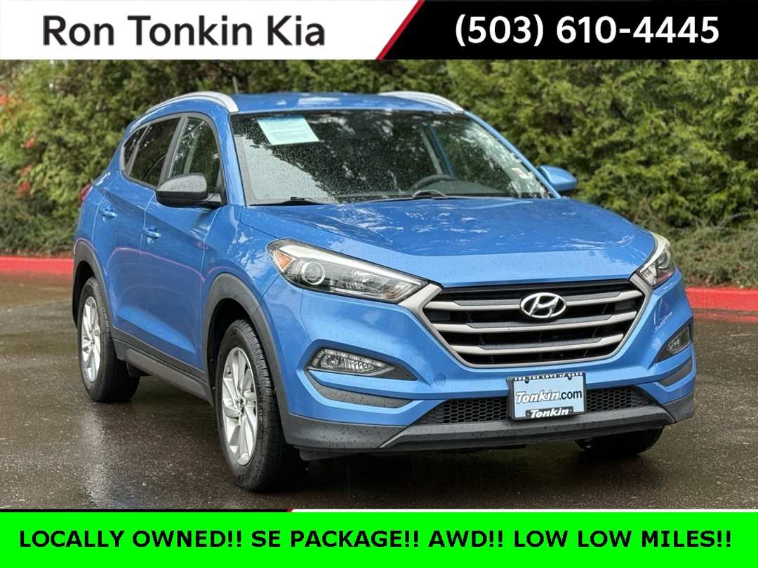 2016 Hyundai Tucson SE Caribbean Blue 2.0L DOHC 3.648 Axle Ratio, 4-Wheel Disc Brakes, 6 Speakers, ABS brakes, Air Conditioning, Alloy wheels, AM/FM radio: SiriusXM, Anti-whiplash front head restraints, Brake assist, Bumpers: body-color, Carpeted Floor Mats, CD player, Delay-off headlights, Driver door bin, Driver Power Window w/Auto Up/Down, Driver vanity mirror, Dual front impact airbags, Dual front side impact airbags, Dual Illuminated Vanity Mirrors, Electronic Stability Control, Exterior Parking Camera Rear, Four wheel independent suspension, Front anti-roll bar, Front Bucket Seats, Front Bucket Seats w/Power Driver's Seat, Front Center Armrest, Front reading lights, Fully automatic headlights, Heated door mirrors, Illuminated entry, LED Daytime Running Lights, Low tire pressure warning, Occupant sensing airbag, Option Group 02, Overhead airbag, Overhead console, Panic alarm, Passenger door bin, Passenger vanity mirror, Power door mirrors, Power steering, Power windows, Radio: Autonet AM/FM/SiriusXM/CD/MP3 Audio System, Rear anti-roll bar, Rear seat center armrest, Rear window defroster, Rear window wiper, Remote keyless entry, SE Popular Package 02, Security system, Speed control, Speed-sensing steering, Split folding rear seat, Spoiler, Steering wheel mounted audio controls, Tachometer, Telescoping steering wheel, Tilt steering wheel, Traction control, Trip computer, Variably intermittent wipers, Wheels: 17 X 7.0JJ Alloys.KBB Fair Market Range High: $12,255Odometer is 66299 miles below market average!21/26 City/Highway MPG 21/26 City/Highway MPGAwards: * 2016 IIHS Top Safety Pick+, Top Safety Pick+ * 2016 KBB.com 10 Best SUVs Under $25,000 * 2016 KBB.com 10 Best All-Wheel Drive Vehicles Under $25,000 * 2016 KBB.com Best Buy Awards Finalist * 2016 KBB.com 5-Year Cost to Own Awards Reviews: * Turbocharged engine delivers peppy acceleration and good fuel economy; plenty of advanced safety and infotainment features are available; comfortable ride on rough roads. Source: EdmundsCome See us today and Drive! RON TONKIN KIA 19335 SE MCLOUGHLIN BLVD GLADSTONE, OR 97027.