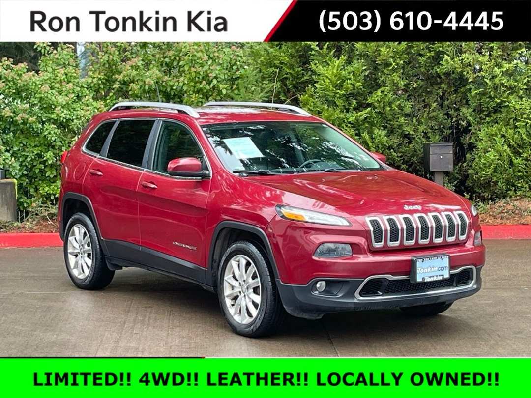 2016 Jeep Cherokee Limited Deep Cherry Red Crystal Pearlcoat 2.4L 4-Cylinder SMPI SOHC 3.73 Axle Ratio, 4-Wheel Disc Brakes, 6 Speakers, 8.4" Touchscreen Display, ABS brakes, Active Grille Shutters, Air Conditioning, Alloy wheels, AM/FM radio: SiriusXM, Anti-whiplash front head restraints, Auto-dimming Rear-View mirror, Automatic temperature control, Auxiliary Transmission Oil Cooler, Brake assist, Bumpers: body-color, Compass, Delay-off headlights, Driver door bin, Driver vanity mirror, Dual front impact airbags, Dual front side impact airbags, Electronic Stability Control, Emergency communication system, Engine Oil Cooler, Exterior Mirrors Courtesy Lamps, Exterior Mirrors w/Supplemental Signals, Four wheel independent suspension, Front anti-roll bar, Front Bucket Seats, Front Center Armrest, Front dual zone A/C, Front fog lights, Front reading lights, Fully automatic headlights, Garage door transmitter, GPS Antenna Input, Heated door mirrors, Heated front seats, Heated steering wheel, Illuminated entry, Integrated Voice Command w/Bluetooth, Knee airbag, Leather Shift Knob, Leather Trimmed Bucket Seats, Low tire pressure warning, Manufacturer's Statement of Origin, Normal Duty Suspension, Occupant sensing airbag, Outside temperature display, Overhead airbag, Overhead console, Panic alarm, ParkView Rear Back-Up Camera, Passenger door bin, Passenger vanity mirror, Power door mirrors, Power driver seat, Power steering, Power windows, Quick Order Package 21G, Radio data system, Radio: Uconnect 8.4, Rear anti-roll bar, Rear reading lights, Rear seat center armrest, Rear side impact airbag, Rear window defroster, Rear window wiper, Remote keyless entry, Roof rack: rails only, Security system, SIRIUSXM Satellite Radio, Speed control, Speed-sensing steering, Split folding rear seat, Spoiler, Steering wheel mounted audio controls, Tachometer, Telescoping steering wheel, Tilt steering wheel, Traction control, Trip computer, Turn signal indicator mirrors, Uconnect Access, Variably intermittent wipers, Voltmeter, Wheels: 18" x 7" Polished Aluminum.KBB Fair Market Range High: $8,950Priced below KBB Fair Purchase Price!21/28 City/Highway MPG 21/28 City/Highway MPGCome See us today and Drive! RON TONKIN KIA 19335 SE MCLOUGHLIN BLVD GLADSTONE, OR 97027.