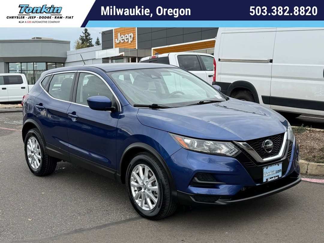 Recent Arrival! 2021 Nissan Rogue Sport S 2.0L DOHC CVT with Xtronic AWD 4D Sport Utility Caspian Blue Metallic AWD, 1-Piece Carpeted Cargo Area Protector & Floor Mats, 17" Aluminum Wheels, 4 Speakers, 4-Wheel Disc Brakes, 6.386 Axle Ratio, ABS brakes, Air Conditioning, AM/FM Radio, AM/FM radio: SiriusXM, Auto High-beam Headlights, Blind Spot Warning, Brake assist, Bumpers: body-color, CD player, Cloth Seat Trim, Custom Fuel Wheels and Off-Road Tires, Delay-off headlights, Driver door bin, Driver vanity mirror, Dual front impact airbags, Dual front side impact airbags, Electronic Stability Control, First Aid Kit, Four wheel independent suspension, Front anti-roll bar, Front Bucket Seats, Front Center Armrest, Front reading lights, Fully automatic headlights, Illuminated entry, Knee airbag, Low tire pressure warning, NissanConnect featuring Apple CarPlay and Android Auto, Occupant sensing airbag, Outside temperature display, Overhead airbag, Overhead console, Panic alarm, Passenger door bin, Passenger vanity mirror, Power door mirrors, Power steering, Power windows, Radio data system, Rear anti-roll bar, Rear Parking Sensors, Rear seat center armrest, Rear side impact airbag, Rear window defroster, Rear window wiper, Remote keyless entry, Security system, Speed control, Speed-sensing steering, Speed-Sensitive Wipers, Split folding rear seat, Spoiler, Steering wheel mounted audio controls, Tachometer, Telescoping steering wheel, Tilt steering wheel, Traction control, Trip computer, Variably intermittent wipers, AWD. ***Call (503) 258-5800 to speak to a Sales Professional*** Come in to Ron Tonkin Chrysler Jeep Dodge Ram Fiat in Milwaukie to test drive today! DL0087.