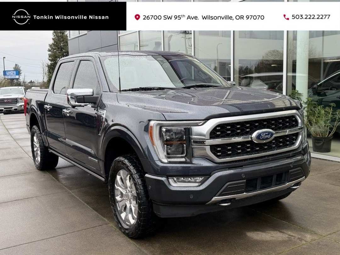 2022 Ford F-150 Platinum Smoked Quartz Metallic Tinted Clearcoat 3.5L PowerBoost Full-Hybrid V6 23/23 City/Highway MPG 3.5L PowerBoost Full-Hybrid V6, 4WD, 20" Polished Aluminum Wheels, 360 Degree Camera, 4-Wheel Disc Brakes, 4x4 FX4 Off-Road Bodyside Decal, 8 Speakers, ABS brakes, Active Park Assist 2.0, Active Park Assist 2.0 Removal, Adjustable pedals, Air Conditioning, AM/FM radio: SiriusXM with 360L, Auto High-beam Headlights, Auto Start-Stop Removal, Auto tilt-away steering wheel, Auto-dimming door mirrors, Auto-dimming Rear-View mirror, Automatic temperature control, Bed Utility Package, BlueCruise, BoxLink, Brake assist, Bumpers: body-color, Class IV Trailer Hitch Receiver, Compass, Delay-off headlights, Driver door bin, Driver vanity mirror, Dual front impact airbags, Dual front side impact airbags, Electronic Locking w/3.73 Axle Ratio, Electronic Stability Control, Emergency communication system: SYNC 4 911 Assist, Equipment Group 701A High, Exterior Parking Camera Rear, Ford Co-Pilot360 Active 2.0, Front anti-roll bar, Front Bucket Seats, Front Center Armrest, Front dual zone A/C, Front fog lights, Front reading lights, Front wheel independent suspension, Fully automatic headlights, FX4 Off-Road Package, Garage door transmitter, GVWR: 7,350 lbs Payload Package, Heated door mirrors, Heated front seats, Heated rear seats, Heated steering wheel, Hill Descent Control, Illuminated entry, Integrated Trailer Brake Controller, LED Box Lighting, LED Sideview Mirror Spotlights, Low tire pressure warning, Memory seat, Monotube Rear Shocks, Multicontour Seats w/Active Motion Removal, Occupant sensing airbag, Off-Road Tuned Front Shock Absorbers, Outside temperature display, Overhead airbag, Overhead console, Panic alarm, Passenger door bin, Passenger vanity mirror, Pedal memory, Power door mirrors, Power driver seat, Power passenger seat, Power steering, Power Tailgate, Power windows, Pro Trailer Backup Assist, Radio data system, Radio: B&O Sound System by Bang & Olufsen, Radio: B&O Unleashed Sound System by Bang & Olufsen, Rain sensing wipers, Rear reading lights, Rear seat center armrest, Rear step bumper, Rear window defroster, Remote keyless entry, Retractable Tonneau Pickup Box Cover, Rock Crawl Mode, Security system, Speed control, Speed-sensing steering, Split folding rear seat, Steering wheel memory, Steering wheel mounted audio controls, SYNC 4 w/Enhanced Voice Recognition, Tachometer, Tailgate Step w/Tailgate Work Surface, Telescoping steering wheel, Tilt steering wheel, Tough Bed Spray-In Bedliner, Tow Technology Package, Traction control, Tray Style Floor Liner, Trip computer, Turn signal indicator mirrors, Twin Panel Moonroof, Unique Multi-Contour Leather Bucket Seats, Variably intermittent wipers, Ventilated front seats, Voltmeter, Wheel Well Liner, 3.5L PowerBoost Full-Hybrid V6, 4WD. CARFAX One-Owner. Priced below KBB Fair Purchase Price! Our Best Price Up Front, No Games or Gimmicks. Our advertised price is for a retail type purchase and may not be available for Fleet or Commercial use type purchase; please call us to confirm.
