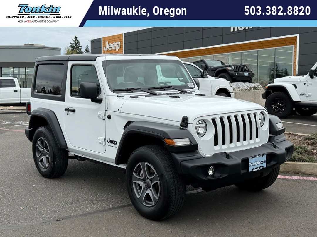 CARFAX One-Owner. Clean CARFAX. 2022 Jeep Wrangler Sport S 2.0L I4 DOHC 8-Speed Automatic 4WD 2D Sport Utility Bright White Clearcoat 4WD, 1-Yr SiriusXM Guardian Trial, 220 Amp Alternator, 240 Amp Alternator, 4G LTE Wi-Fi Hot Spot, 5-Year SiriusXM Traffic Service, 5-Year SiriusXM Travel Link Service, 7 & 4 Pin Wiring Harness, 7.0" Touchscreen Display, 700 Amp Maintenance Free Battery, 8.4" Radio & Premium Audio Group, 8.4" Touchscreen Display, Air Conditioning, Air Conditioning w/Auto Temperature Control, Air Filtering, Alpine Premium Audio System, Apple CarPlay, Auto-Dimming Rear-View Mirror, Automatic Headlamps, Auxiliary Switches, Class II Receiver Hitch, Cluster 7.0" TFT Color Display, Deep Tint Sunscreen Windows, Emergency/Assistance Call, For Details, Visit DriveUconnect.com, For More Info, Call 800-643-2112, Front 1-Touch Down Power Windows, Front Door Locks 2-Door Passive Entry, Global Telematics Box Module (TBM), Google Android Auto, GPS Antenna Input, GPS Navigation, HD Radio, Integrated Center Stack Radio, Integrated Voice Command w/Bluetooth, Leather Wrapped Steering Wheel, Off-Road Info Pages, Power Heated Mirrors, Quick Order Package 22S Sport S, R1234YF A/C Refrigerant, Radio: Uconnect 4 w/7" Display, Radio: Uconnect 4C Nav w/8.4" Display, Remote Keyless Entry, Security Alarm, SiriusXM Guardian-Included Trial (B), SiriusXM Radio Service, SiriusXM Satellite Radio, SiriusXM Traffic Plus, SiriusXM Travel Link, Speed Sensitive Power Locks, Sport S, Sun Visors w/Illuminated Vanity Mirrors, Technology Group, Trailer Tow & HD Electrical Group, USB Host Flip, Wheels: 17" x 7.5" Tech Silver Aluminum, 3.45 Overall Top Gear Ratio, 4-Wheel Disc Brakes, 8 Speakers, ABS brakes, AM/FM radio, Auxiliary Battery, Black 3-Piece Hard Top, Brake assist, Cloth Low-Back Bucket Seats, Compass, Delay-off headlights, Driver door bin, Driver vanity mirror, Dual front impact airbags, Dual front side impact airbags, Electronic Stability Control, Emergency communication system: SiriusXM Guardian, Engine Oil Cooler, Freedom Panel Storage Bag, Front anti-roll bar, Front Bucket Seats, Front Center Armrest w/Storage, Front fog lights, Front reading lights, Integrated roll-over protection, Low tire pressure warning, Manufacturer's Statement of Origin, MOPAR All-Weather Floor Mats, No Soft Top, Non-Locking Fuel Cap w/o Discriminator, Normal Duty Suspension, Occupant sensing airbag, Outside temperature display, ParkView Rear Back-Up Camera, Passenger door bin, Passenger vanity mirror, Power steering, Radio data system, Radio: Uconnect 3 w/5" Display, Rear anti-roll bar, Rear reading lights, Rear Window Defroster, Rear Window Wiper/Washer, Speed control, Start-Stop Dual Battery System, Steering wheel mounted audio controls, Tachometer, Telescoping steering wheel, Tilt steering wheel, Traction control, Trip computer, Variably intermittent wipers, Wheels: 17" x 7.5" Black Steel Styled, Wheels: 17" x 7.5" Machined Granite Crystal, 4WD, 1-Yr SiriusXM Guardian Trial, 220 Amp Alternator, 240 Amp Alternator, 4G LTE Wi-Fi Hot Spot, 5-Year SiriusXM Traffic Service, 5-Year SiriusXM Travel Link Service, 7 & 4 Pin Wiring Harness, 7.0" Touchscreen Display, 700 Amp Maintenance Free Battery, 8.4" Radio & Premium Audio Group, 8.4" Touchscreen Display, Air Conditioning, Air Conditioning w/Auto Temperature Control, Air Filtering, Alpine Premium Audio System, Apple CarPlay, Auto-Dimming Rear-View Mirror, Automatic Headlamps, Auxiliary Switches, Class II Receiver Hitch, Cluster 7.0" TFT Color Display, Deep Tint Sunscreen Windows, Emergency/Assistance Call, For Details, Visit DriveUconnect.com, For More Info, Call 800-643-2112, Front 1-Touch Down Power Windows, Front Door Locks 2-Door Passive Entry, Global Telematics Box Module (TBM), Google Android Auto, GPS Antenna Input, GPS Navigation, HD Radio, Integrated Center Stack Radio, Integrated Voice Command w/Bluetooth, Leather Wrapped Steering Wheel, Off-Road Info Pages, Power Heated Mirrors, Quick Order Package 22S Sport