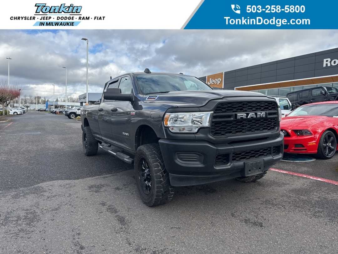 Recent Arrival! Clean CARFAX. 2022 Ram 2500 Tradesman 6.4L V8 8-Speed Automatic 4WD 4D Crew Cab Granite Crystal Metallic Clearcoat 4WD, 2 Way Rear Headrest Seat, 4 Way Front Headrests, 40/20/40 Split Bench Seat, Bed Utility Group, Carpet Floor Covering, Cloth 40/20/40 Bench Seat, Front Armrest w/Cupholders, LED Bed Lighting, Manual Adjust 4-Way Driver Seat, Manual Adjust 4-Way Front Passenger Seat, MOPAR Deployable Bed Step, MOPAR Spray In Bedliner, Quick Order Package 2GA Tradesman, Rear Folding Seat, Rear Power Sliding Window, Rear Window Defroster, SiriusXM Satellite Radio, Storage Tray, Tradesman Level 2 Equipment Group, 17" x 7.5" Steel Styled Wheels, 3.73 Axle Ratio, 4-Wheel Disc Brakes, 50 Gallon Fuel Tank, 6 Speakers, ABS brakes, Active Noise Control System, Air Conditioning, AM/FM radio, Black Exterior Mirrors, Brake assist, Center Hub, Compass, Delay-off headlights, Driver door bin, Dual front impact airbags, Dual front side impact airbags, Electronic Stability Control, Electronically Controlled Throttle, Emergency communication system: SiriusXM Guardian, Exterior Mirrors Courtesy Lamps, Exterior Mirrors w/Heating Element, Exterior Mirrors w/Supplemental Signals, Front anti-roll bar, Front Center Armrest w/Storage, Front License Plate Bracket, Front reading lights, Fully automatic headlights, Global Telematics Box Module (TBM), GPS Antenna Input, Heated door mirrors, Heavy Duty Vinyl 40/20/40 Split Bench Seat, Illuminated entry, Integrated Voice Command w/Bluetooth, Low tire pressure warning, Mirror Running Lights, MOPAR Front & Rear Rubber Floor Mats, Occupant sensing airbag, Outside temperature display, Overhead airbag, Overhead console, ParkView Rear Back-Up Camera, Passenger door bin, Passenger vanity mirror, Power Adjust & Heated Black Tow Mirrors, Power door mirrors, Power steering, Power windows, Radio data system, Radio: Uconnect 3 w/5" Display, Rear anti-roll bar, Rear step bumper, Selectable Tire Fill Alert, SiriusXM Radio Service, Speed control, Tachometer, Tilt steering wheel, Tip Start, Traction control, Trailer Brake Control, Trailer Light Check, Trailer Tow Mirrors, Variably intermittent wipers, Voltmeter, 4WD, 2 Way Rear Headrest Seat, 4 Way Front Headrests, 40/20/40 Split Bench Seat, Bed Utility Group, Carpet Floor Covering, Cloth 40/20/40 Bench Seat, Front Armrest w/Cupholders, LED Bed Lighting, Manual Adjust 4-Way Driver Seat, Manual Adjust 4-Way Front Passenger Seat, MOPAR Deployable Bed Step, MOPAR Spray In Bedliner, Quick Order Package 2GA Tradesman, Rear Folding Seat, Rear Power Sliding Window, Rear Window Defroster, SiriusXM Satellite Radio, Storage Tray, Tradesman Level 2 Equipment Group. ***Call (503) 258-5800 to speak to a Sales Professional*** Come in to Ron Tonkin Chrysler Jeep Dodge Ram Fiat in Milwaukie to test drive today! DL0087.