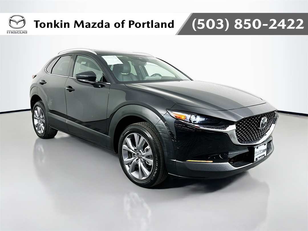 Mazda Factory Certified with complimentary 7 year 100k mile warranty! ! CARFAX One-Owner. Clean CARFAX. Jet Black Mica 2023 Mazda CX-30 2.5 S Premium Package 4D Sport Utility SKYACTIV® 2.5L 4-Cylinder DOHC 16V 6-Speed Automatic AWD 4-Wheel Disc Brakes, 8 Speakers, ABS brakes, Air Conditioning, Android Auto, Apple CarPlay, AppLink/Apple CarPlay and Android Auto, Auto High-beam Headlights, Automatic temperature control, Back Up Camera, Backup Camera, Blind Spot, BlueTooth, Bose Audio Credit, Brake assist, Bumpers: body-color, Compass, Delay-off headlights, Driver door bin, Driver vanity mirror, Dual front impact airbags, Dual front side impact airbags, Electronic Stability Control, Emergency communication system: Mazda Connected Services (3-year complimentary trial included), Front anti-roll bar, Front Bucket Seats, Front Center Armrest, Front dual zone A/C, Front reading lights, Front wheel independent suspension, Fully automatic headlights, Heads-Up Display, Heated Front Bucket Seats, Heated front seats, Heated Seats, Illuminated entry, Keyless Entry, Knee airbag, Leather, Leather Seat Trim, Leather Shift Knob, Leather steering wheel, Low tire pressure warning, MAZDA CONNECT Infotainment System, Memory seat, Navigation system: MAZDA CONNECT, Occupant sensing airbag, Outside temperature display, Overhead airbag, Overhead console, Panic alarm, Passenger vanity mirror, Power door mirrors, Power driver seat, Power Liftgate, Power moonroof, Power steering, Power windows, Radio data system, Radio: AM/FM/HD Audio System w/Mazda Navigation, Rear seat center armrest, Rear side impact airbag, Rear window defroster, Remote keyless entry, Speed control, Speed-sensing steering, Split folding rear seat, Spoiler, Steering wheel mounted audio controls, Tachometer, Telescoping steering wheel, Tilt steering wheel, Traction control, Trip computer, Turn signal indicator mirrors.Priced below KBB Fair Purchase Price! Odometer is 22968 miles below market average!26/33 City/Highway MPG 26/33 City/Highway MPG