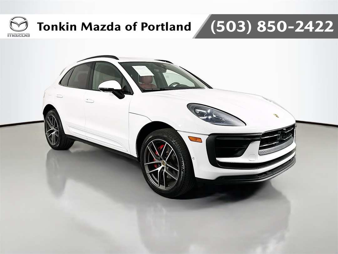 PREMIUM PACKAGE PLUS W/ BOSE SURROUND SOUND SYSTEM, LANE CHANGE ASSIST! CARFAX One-Owner. Clean CARFAX. White 2023 Porsche Macan S 4D Sport Utility V6 7-Speed Porsche Doppelkupplung (PDK) AWD 10 Speakers, 14-Way Power Seats, 4-Wheel Disc Brakes, 8-Way Power Seats, ABS brakes, Air Conditioning, AM/FM radio: SiriusXM, Apple CarPlay, Apple CarPlay & Android Auto, Auto-dimming door mirrors, Auto-dimming Rear-View mirror, Automatic temperature control, Back Up Camera, Backup Camera, BlueTooth, BOSE Surround Sound System, Brake assist, Bumpers: body-color, Delay-off headlights, Driver door bin, Driver vanity mirror, Dual front impact airbags, Dual front side impact airbags, Electronic Stability Control, Emergency communication system: Car Connect Services, Four wheel independent suspension, Front anti-roll bar, Front Bucket Seats, Front Center Armrest, Front dual zone A/C, Front reading lights, Fully automatic headlights, Garage door transmitter: HomeLink, Heated door mirrors, Heated front seats, Heated Seats, Illuminated entry, Keyless Entry, Lane Change Assist (LCA), Leather, Leather Shift Knob, Leather steering wheel, LED Headlights w/Dynamic Light System Plus, Low tire pressure warning, Memory Package, Memory seat, Navigation System, Occupant sensing airbag, Outside temperature display, Overhead airbag, Overhead console, Panic alarm, Panorama Roof, Panoramic Roof System, Partial Leather Seat Trim w/Sport-Tex, Passenger vanity mirror, Porsche Communication Management, Power door mirrors, Power driver seat, Power Liftgate, Power passenger seat, Power steering, Power windows, Premium Package Plus, Radio data system, Rear air conditioning, Rear anti-roll bar, Rear Heated Seats, Rear reading lights, Rear seat center armrest, Rear side impact airbag, Rear window defroster, Remote keyless entry, Security system, Speed control, Speed-sensing steering, Split folding rear seat, Spoiler, Sport steering wheel, Steering wheel mounted audio controls, Tachometer, Telescoping steering wheel, Tilt steering wheel, Traction control, Trip computer, Turn signal indicator mirrors, Ventilated Front Seats.17/23 City/Highway MPG