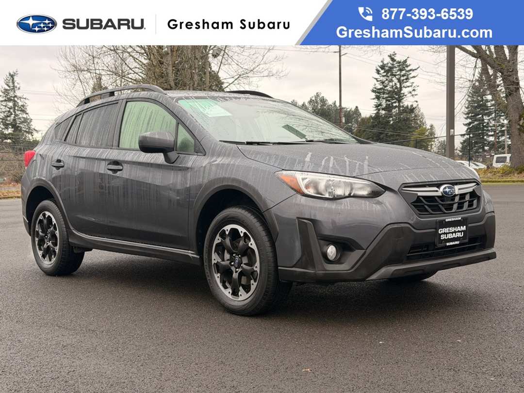 Recent Arrival! CARFAX One-Owner! Subaru Certified Pre-Owned!6-Way Power Driver's Seat, Blind Spot Detection w/Rear Cross-Traffic Alert, EyeSight System, Keyless Access w/Push-Button Start, Moonroof & BSD w/RCTA & Power Driver Seat, Power Moonroof, 3.90 Axle Ratio, 4-Wheel Disc Brakes, 6 Speakers, ABS brakes, Air Conditioning, Alloy wheels, AM/FM radio: SiriusXM, Anti-whiplash front head restraints, Automatic temperature control, Brake assist, Bumpers: body-color, CD player, Cloth Upholstery, Driver door bin, Driver vanity mirror, Dual front impact airbags, Dual front side impact airbags, Electronic Stability Control, Emergency communication system: STARLINK Safety and Security (Subscription Required), Exterior Parking Camera Rear, Four wheel independent suspension, Front anti-roll bar, Front Bucket Seats, Front Center Armrest, Front fog lights, Front reading lights, Fully automatic headlights, Heated door mirrors, Heated Front Bucket Seats, Heated front seats, Illuminated entry, Knee airbag, Leather Shift Knob, Low tire pressure warning, Occupant sensing airbag, Outside temperature display, Overhead airbag, Overhead console, Panic alarm, Passenger door bin, Passenger vanity mirror, Power door mirrors, Power steering, Power windows, Radio data system, Radio: Subaru STARLINK 6.5" Multimedia Plus System, Rear anti-roll bar, Rear window defroster, Rear window wiper, Remote keyless entry, Security system, Speed control, Speed-sensing steering, Split folding rear seat, Spoiler, STARLINK/Apple CarPlay/Android Auto, Steering wheel mounted audio controls, Tachometer, Telescoping steering wheel, Tilt steering wheel, Traction control, Trip computer, Variably intermittent wipers, Wheels: 17" x 7.0J Alum Alloy Blk w/Machine Finish, 6-Way Power Driver's Seat, Blind Spot Detection w/Rear Cross-Traffic Alert, EyeSight System, Keyless Access w/Push-Button Start, Moonroof & BSD w/RCTA & Power Driver Seat, Power Moonroof. 2023 Subaru Crosstrek Premium 4D Sport Utility 2.0L 4-Cylinder DOHC 16V Lineartronic CVT AWD Magnetite Gray Metallic Subaru Certified Pre-Owned Details: * Warranty Deductible: $0 * Powertrain Limited Warranty: 84 Month/100,000 Mile (whichever comes first) from original in-service date * Vehicle History * Transferable Warranty * SiriusXM 3-Month trial subscription, $500 Owner Loyalty coupon & 1 year trial subscription to STARLINK * Roadside Assistance * 152 Point InspectionClean CARFAX.