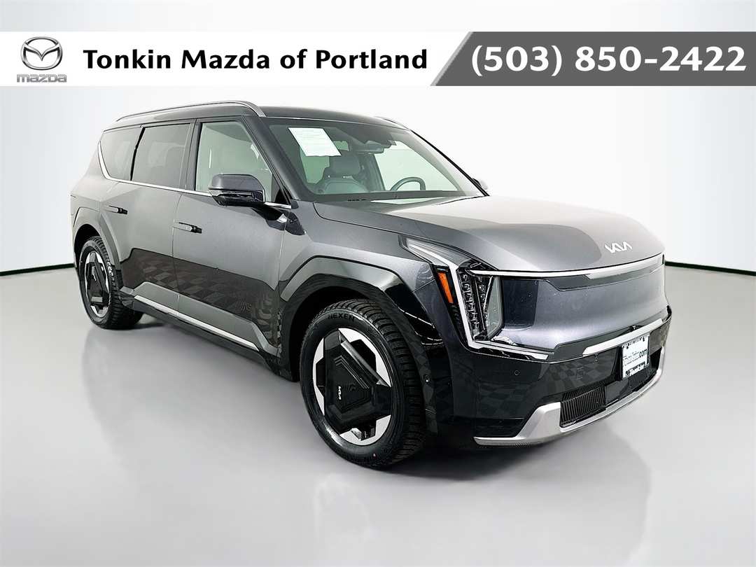 CARFAX One-Owner. Clean CARFAX. Panthera Metal 2024 Kia EV9 Land 4D Sport Utility Electric Motor 1-Speed Automatic AWD 14 Speakers, 3rd row seats, 4-Wheel Disc Brakes, ABS brakes, Air Conditioning, AM/FM radio: SiriusXM, Apple CarPlay & Android Auto, Auto High-beam Headlights, Auto-dimming door mirrors, Auto-dimming Rear-View mirror, Automatic temperature control, Back Up Camera, Backup Camera, Blind Spot, BlueTooth, Brake assist, Bumpers: body-color, Delay-off headlights, Driver door bin, Driver vanity mirror, Dual front impact airbags, Dual front side impact airbags, Electronic Stability Control, Emergency communication system: 911 Connect, Four wheel independent suspension, Front anti-roll bar, Front Bucket Seats, Front dual zone A/C, Front reading lights, Fully automatic headlights, Garage door transmitter: HomeLink, Heated & Ventilated Front Bucket Seats, Heated door mirrors, Heated front seats, Heated rear seats, Heated Seats, Heated steering wheel, Illuminated entry, Keyless Entry, Knee airbag, Low tire pressure warning, Memory seat, Navigation System, Occupant sensing airbag, Outside temperature display, Overhead airbag, Overhead console, Panic alarm, Passenger vanity mirror, Power door mirrors, Power driver seat, Power Liftgate, Power moonroof, Power passenger seat, Power steering, Power windows, Radio data system, Radio: AM/FM/MP3/HD Radio/SiriusXM Meridian Audio, Rear air conditioning, Rear anti-roll bar, Rear reading lights, Rear seat center armrest, Rear window defroster, Reclining 3rd row seat, Remote keyless entry, Security system, Speed control, Speed-sensing steering, Split folding rear seat, Spoiler, Steering wheel memory, Steering wheel mounted audio controls, SynTex Leather Seats, Telescoping steering wheel, Tilt steering wheel, Traction control, Trip computer, Turn signal indicator mirrors, Ventilated front seats, Ventilated rear seats.