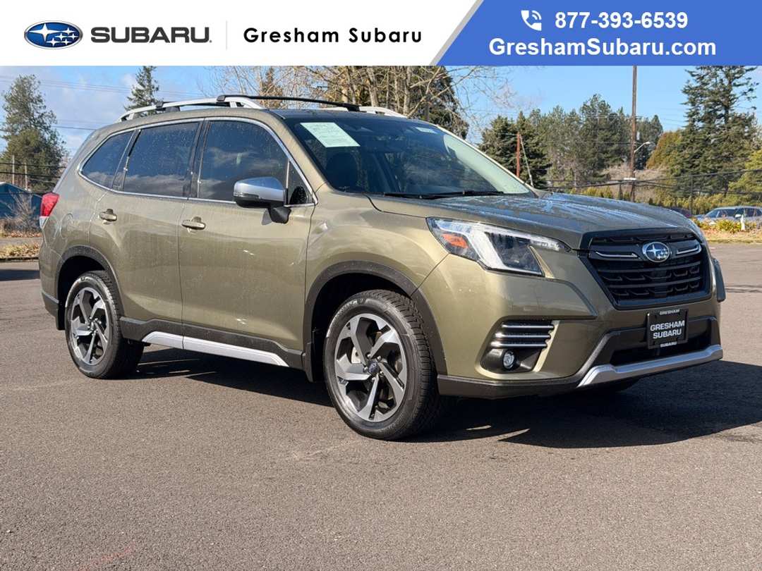 Recent Arrival! CARFAX One-Owner! Subaru Certified Pre-Owned!All-Weather Floor Liners, Auto-Dimming Exterior Mirror w/Approach Light, Auto-Dimming Mirror w/Compass & HomeLink, Cargo Net, Navigation System, Pop Package 2, Rear Bumper Cover, Standard Model, 3.70 Axle Ratio, 4-Wheel Disc Brakes, 9 Speakers, ABS brakes, Air Conditioning, Alloy wheels, AM/FM radio: SiriusXM, Anti-whiplash front head restraints, Auto High-beam Headlights, Automatic temperature control, Brake assist, Bumpers: body-color, Crossbar Set - Aero, Driver door bin, Driver vanity mirror, Dual front impact airbags, Dual front side impact airbags, Electronic Stability Control, Emergency communication system: STARLINK Safety and Security (Subscription Required), Exterior Parking Camera Rear, Four wheel independent suspension, Front anti-roll bar, Front Bucket Seats, Front Center Armrest, Front dual zone A/C, Front fog lights, Front reading lights, Fully automatic headlights, harman/kardon 9-Speaker Audio System, harman/kardon® Speakers, Heated door mirrors, Heated Front Bucket Seats, Heated front seats, Heated rear seats, Heated steering wheel, HVAC memory, Illuminated entry, Knee airbag, Leather Shift Knob, Leather steering wheel, Low tire pressure warning, Memory seat, Occupant sensing airbag, Outside temperature display, Overhead airbag, Overhead console, Panic alarm, Passenger door bin, Passenger vanity mirror, Perforated Leather-Trimmed Upholstery, Power door mirrors, Power driver seat, Power Liftgate, Power moonroof: Panoramic, Power passenger seat, Power steering, Power windows, Radio data system, Radio: Subaru STARLINK 8.0" Multimedia Nav System, Rear anti-roll bar, Rear seat center armrest, Rear Seatback Protector, Rear window defroster, Rear window wiper, Remote keyless entry, Roof rack: rails only, Security system, Speed control, Speed-sensing steering, Splash Guards, Split folding rear seat, Spoiler, STARLINK/Apple CarPlay/Android Auto, Steering wheel mounted audio controls, Tachometer, Telescoping steering wheel, Tilt steering wheel, Traction control, Trip computer, Turn signal indicator mirrors, Variably intermittent wipers, Wheels: 18" x 7.0 J Dark Gray Machine Finish Alloy, All-Weather Floor Liners, Auto-Dimming Exterior Mirror w/Approach Light, Auto-Dimming Mirror w/Compass & HomeLink, Cargo Net, Navigation System, Pop Package 2, Rear Bumper Cover, Standard Model. 2024 Subaru Forester Touring 4D Sport Utility 2.5L 4-Cylinder DOHC 16V Lineartronic CVT AWD Green Metallic Subaru Certified Pre-Owned Details: * SiriusXM 3-Month trial subscription, $500 Owner Loyalty coupon & 1 year trial subscription to STARLINK * Warranty Deductible: $0 * 152 Point Inspection * Vehicle History * Transferable Warranty * Roadside Assistance * Powertrain Limited Warranty: 84 Month/100,000 Mile (whichever comes first) from original in-service date