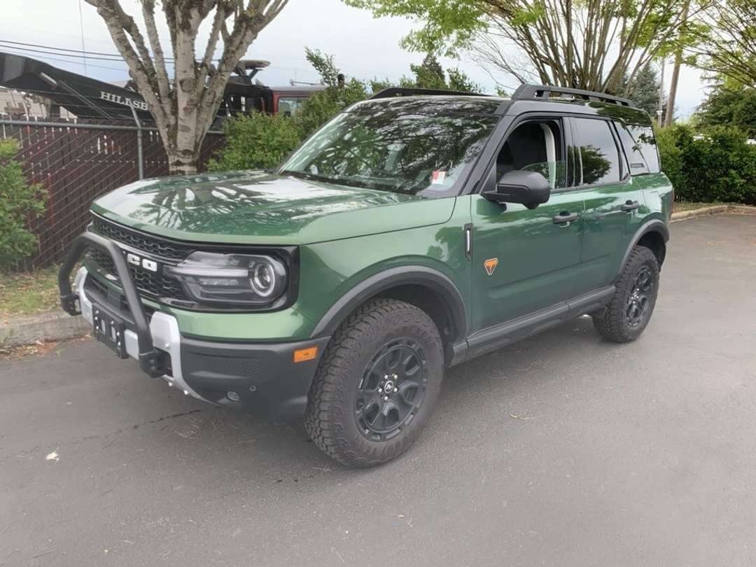 2025 Ford Bronco Sport Badlands Green Metallic 4WD EcoBoost 2.0L I4 GTDi DOHC Turbocharged VCT 8-Speed Automatic4-Wheel Disc Brakes, 6 Speakers, 850W Engine Cooling Fan, ABS brakes, Air Conditioning, Alloy wheels, AM/FM radio: SiriusXM, AM/FM Stereo, Auto High-beam Headlights, Auto-dimming Rear-View mirror, Automatic temperature control, Auxiliary Switches & Wiring, B&O Sound System by Bang & Olufsen, Badlands Tech Package, Brake assist, Brush Guard, Compass, Connected Navigation, Delay-off headlights, Driver door bin, Driver vanity mirror, Dual front impact airbags, Dual front side impact airbags, Electronic Stability Control, Emergency communication system: SYNC 4 911 Assist, Equipment Group 400A, Fender Tie Downs, Four wheel independent suspension, Front anti-roll bar, Front Bucket Seats, Front Center Armrest, Front fog lights, Front License Plate Bracket, Front reading lights, Fully automatic headlights, Garage door transmitter, HD Radio, Heated door mirrors, Heated front seats, Heated steering wheel, High Clearance Fender Flares, HOSS 3.0 Off-Road Suspension, Illuminated entry, Knee airbag, Leather Trimmed Front Bucket Seats, Low tire pressure warning, Memory seat, Occupant sensing airbag, Outside temperature display, Overhead airbag, Overhead console, Panic alarm, Passenger door bin, Passenger vanity mirror, Power door mirrors, Power driver seat, Power Moonroof, Power passenger seat, Power steering, Power windows, Radio data system, Rear anti-roll bar, Rear Black Bumpers, Rear reading lights, Rear seat center armrest, Rear window defroster, Rear window wiper, Recovery Hooks, Remote keyless entry, Sasquatch Badlands Package, Security system, SiriusXM, Speed control, Speed-sensing steering, Speed-Sensitive Wipers, Split folding rear seat, Steering wheel mounted audio controls, SYNC 4 w/Enhanced Voice Recognition, Tachometer, Telescoping steering wheel, Tilt steering wheel, Traction control, Trip computer, Variably intermittent wipers, Wheels: 17" Ebony Black-Painted Aluminum, Wheels: 17" Matte Black-Painted Aluminum.Clean CARFAX.You make the drive, we'll make the deal! Come to www.tonkinhillsborocjdr.com To see our Specials!! Call us at (844) 421-9609 For help with any of our departments. The Road is Yours With Tonkin Hillsboro Chrysler Jeep Dodge Ram!!