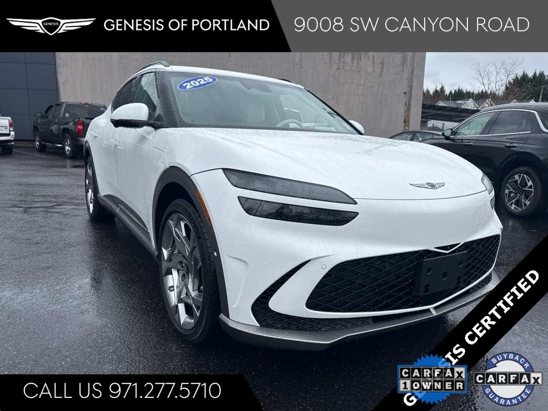 *** PERFORMANCE *** GENESIS CERTIFIED *** 10YR 100K WARRANTY *** ONLY 5,372 MILES *** HEATED/COOLED NAPPA LEATHER *** ALL-WHEEL-DRIVE *** ORIGINAL MSRP $71,900 *** 2025 Genesis GV60 Performance 4D Sport Utility Electric Motor 1-Speed Automatic AWD Uyuni White CARFAX One-Owner. Android Auto & Apple CarPlay, Heated & Ventilated Front Seats w/Memory, Heated rear seats, Nappa Leather Seating Surfaces, Radio: AM/FM/HD Bang & Olufsen Premium Audio System, 17 Speakers, 4-Wheel Disc Brakes, ABS brakes, Adaptive suspension, Air Conditioning, AM/FM radio: SiriusXM, Anti-whiplash front head restraints, Auto High-beam Headlights, Auto tilt-away steering wheel, Auto-dimming door mirrors, Auto-dimming Rear-View mirror, Automatic temperature control, Brake assist, Bumpers: body-color, Delay-off headlights, Dual front impact airbags, Dual front side impact airbags, Electronic Stability Control, Emergency communication system: Genesis Connected Services, Exterior Parking Camera Rear, Four wheel independent suspension, Front anti-roll bar, Front Bucket Seats, Front Center Armrest, Front dual zone A/C, Front reading lights, Fully automatic headlights, Garage door transmitter: HomeLink, Heads-Up Display, Heated door mirrors, Heated steering wheel, Illuminated entry, Knee airbag, Leather steering wheel, Low tire pressure warning, Memory seat, Navigation System, Occupant sensing airbag, Option Group 01, Outside temperature display, Overhead airbag, Overhead console, Panic alarm, Passenger door bin, Passenger vanity mirror, Power door mirrors, Power driver seat, Power Liftgate, Power passenger seat, Power steering, Power windows, Rain sensing wipers, Rear anti-roll bar, Rear reading lights, Rear seat center armrest, Rear side impact airbag, Rear window defroster, Remote keyless entry, Security system, Speed control, Speed-sensing steering, Split folding rear seat, Spoiler, Steering wheel memory, Steering wheel mounted audio controls, Telescoping steering wheel, Tilt steering wheel, Traction control, Trip computer, Turn signal indicator mirrors, Variably intermittent wipers, Wheels: 21" x 8.5J Alloy, Android Auto & Apple CarPlay, Heated & Ventilated Front Seats w/Memory, Heated rear seats, Nappa Leather Seating Surfaces, Radio: AM/FM/HD Bang & Olufsen Premium Audio System.Genesis Of Portland. Certification Program Details: Genesis CPO Program Features • 6-Year / 75,000-Mile Comprehensive Warranty. A 10-Year 100,000-Mile CPO Powertrain Limited Warranty. Comprehensive 191-Point quality assurance inspection.10-Year / Unlimited Mile Roadside Assistance. Rental car and travel interruption reimbursement for covered repairs. 3-Month of No-Charge SiriusXM® Satellite Radio "All-Access" Trial. Connected Car Services.Transferability. 2025 Genesis GV60 Performance Conveniently located to Portland, Beaverton, Hillsboro, Aloha, Lake Oswego, Tigard, Tualatin, Milwaukie, Wilsonville, Clackamas, Gresham, West Slope, Raleigh Hills, Vancouver.