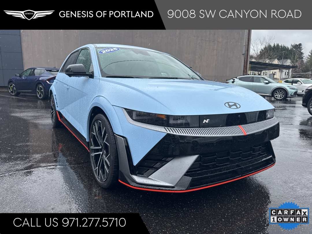 *** IONIQ 5 N *** ONLY 5,754 MILES *** ORIGINAL MSRP $68,705 *** 2025 Hyundai IONIQ 5 N 4D Sport Utility Electric Motor 1-Speed Automatic AWD Performance Blue Matte CARFAX One-Owner. Apple CarPlay & Android Auto, Eco Alcantara/H-Tex Seating Surfaces, Heated & Ventilated N Lightweight Sport Bucket Seats, Heated steering wheel, Navigation System, Power Liftgate, Wheels: 21" x 9.5J Forged N Alloy, 4-Wheel Disc Brakes, 8 Speakers, ABS brakes, Adaptive suspension, Air Conditioning, AM/FM radio: SiriusXM, Auto High-beam Headlights, Auto-dimming Rear-View mirror, Automatic temperature control, Bodyside moldings, Brake assist, Bumpers: body-color, Delay-off headlights, Dual front impact airbags, Dual front side impact airbags, Electronic Stability Control, Emergency communication system: Bluelink+, Fixed Console Carpeted Floor Mats, Four wheel independent suspension, Front anti-roll bar, Front Bucket Seats, Front Center Armrest w/Storage, Front dual zone A/C, Front reading lights, Fully automatic headlights, Garage door transmitter: HomeLink, Heated door mirrors, Heated front seats, Illuminated entry, Leather steering wheel, Low tire pressure warning, Occupant sensing airbag, Option Group 01, Outside temperature display, Overhead airbag, Panic alarm, Passenger door bin, Passenger vanity mirror, Power door mirrors, Power steering, Power windows, Radio: AM/FM/SiriusXM/HD Display Audio System, Rain sensing wipers, Rear anti-roll bar, Rear reading lights, Rear seat center armrest, Rear window defroster, Rear window wiper, Remote keyless entry, Security system, Speed control, Speed-sensing steering, Split folding rear seat, Spoiler, Steering wheel mounted audio controls, Telescoping steering wheel, Tilt steering wheel, Traction control, Trip computer, Turn signal indicator mirrors, Variably intermittent wipers, Ventilated front seats, Apple CarPlay & Android Auto, Eco Alcantara/H-Tex Seating Surfaces, Heated & Ventilated N Lightweight Sport Bucket Seats, Heated steering wheel, Navigation System, Power Liftgate, Wheels: 21" x 9.5J Forged N Alloy.Genesis Of Portland. 2025 Hyundai IONIQ 5 N Base Conveniently located to Portland, Beaverton, Hillsboro, Aloha, Lake Oswego, Tigard, Tualatin, Milwaukie, Wilsonville, Clackamas, Gresham, West Slope, Raleigh Hills, Vancouver.