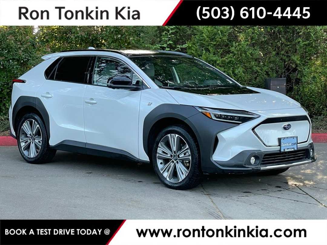 2025 Subaru Solterra Touring White Electric Motor 11 Speakers, 4-Wheel Disc Brakes, ABS brakes, Air Conditioning, Alloy wheels, AM/FM radio: SiriusXM, Apple CarPlay & Android Auto, Auto High-beam Headlights, Auto-dimming Rear-View mirror, Automatic temperature control, Brake assist, Bumpers: body-color, Driver door bin, Driver vanity mirror, Dual front impact airbags, Dual front side impact airbags, Electronic Stability Control, Emergency communication system: Subaru Solterra Connect - Safety Connect (1 year trial included), Exterior Parking Camera Rear, Four wheel independent suspension, Front anti-roll bar, Front Bucket Seats, Front Center Armrest, Front dual zone A/C, Front fog lights, Front reading lights, Fully automatic headlights, Garage door transmitter: HomeLink, harman/kardon® Speakers, Heated & Ventilated Front Bucket Seats, Heated door mirrors, Heated front seats, Heated rear seats, Heated steering wheel, Illuminated entry, Knee airbag, Leather steering wheel, Low tire pressure warning, Memory seat, Navigation system: Cloud Navigation System (Subscription required), Occupant sensing airbag, Outside temperature display, Overhead airbag, Overhead console, Panic alarm, Passenger door bin, Passenger vanity mirror, Power door mirrors, Power driver seat, Power Liftgate, Power passenger seat, Power steering, Power windows, Radio data system, Radio: Subaru 12.3" Multimedia System, Rain sensing wipers, Rear anti-roll bar, Rear reading lights, Rear seat center armrest, Rear window defroster, Remote keyless entry, Security system, Speed control, Speed-sensing steering, Split folding rear seat, Spoiler, StarTex Upholstery, Steering wheel mounted audio controls, Telescoping steering wheel, Tilt steering wheel, Traction control, Trip computer, Turn signal indicator mirrors, Variably intermittent wipers, Ventilated front seats.Clean CARFAX. KBB Fair Market Range High: $30,072111/93 City/Highway MPG 111/93 City/Highway MPGCome See us today and Drive! RON TONKIN KIA 19335 SE MCLOUGHLIN BLVD GLADSTONE, OR 97027.